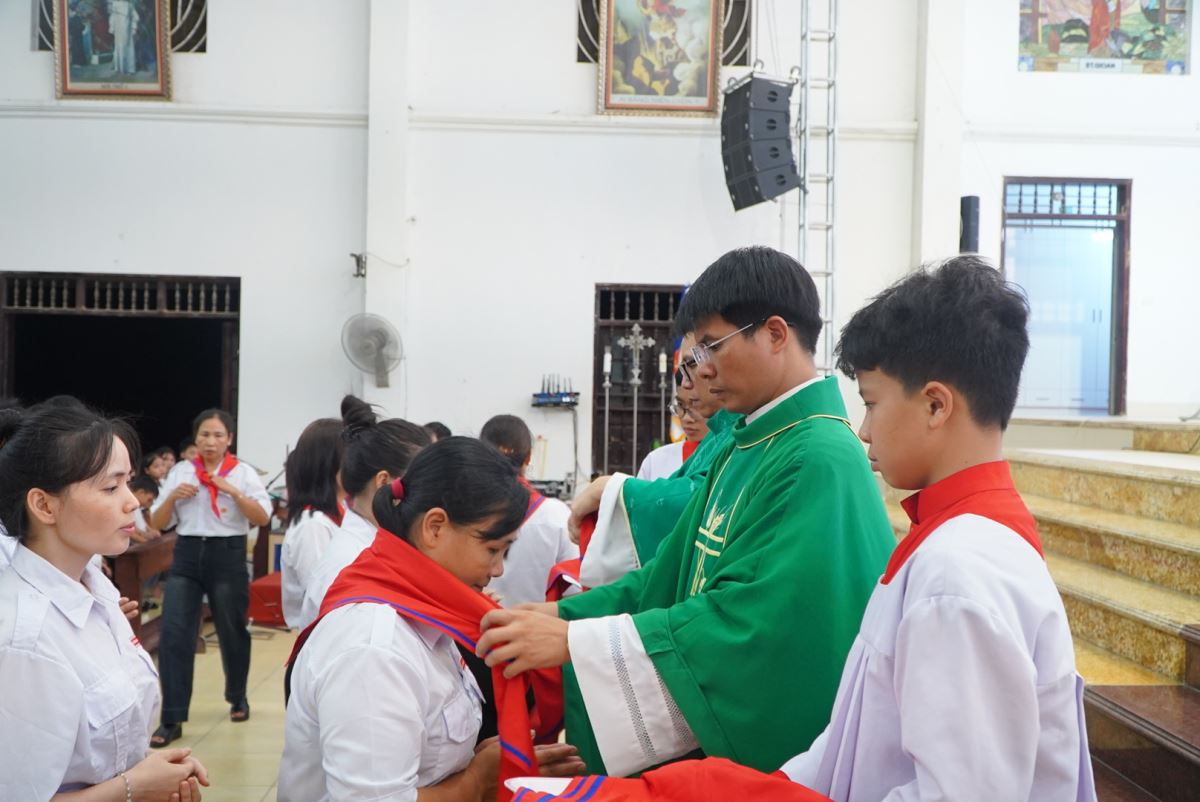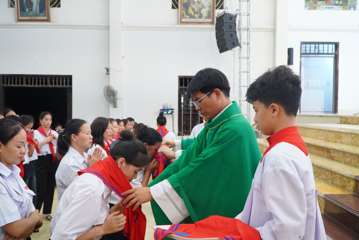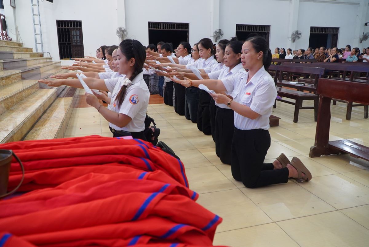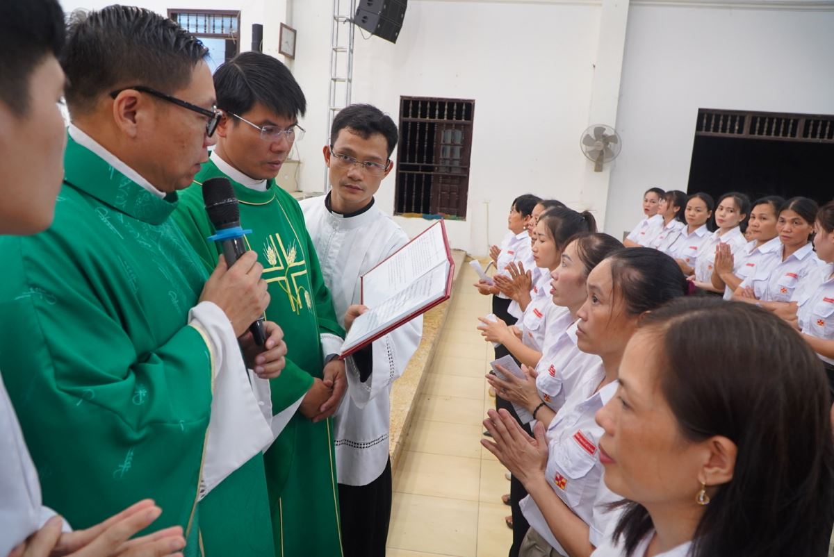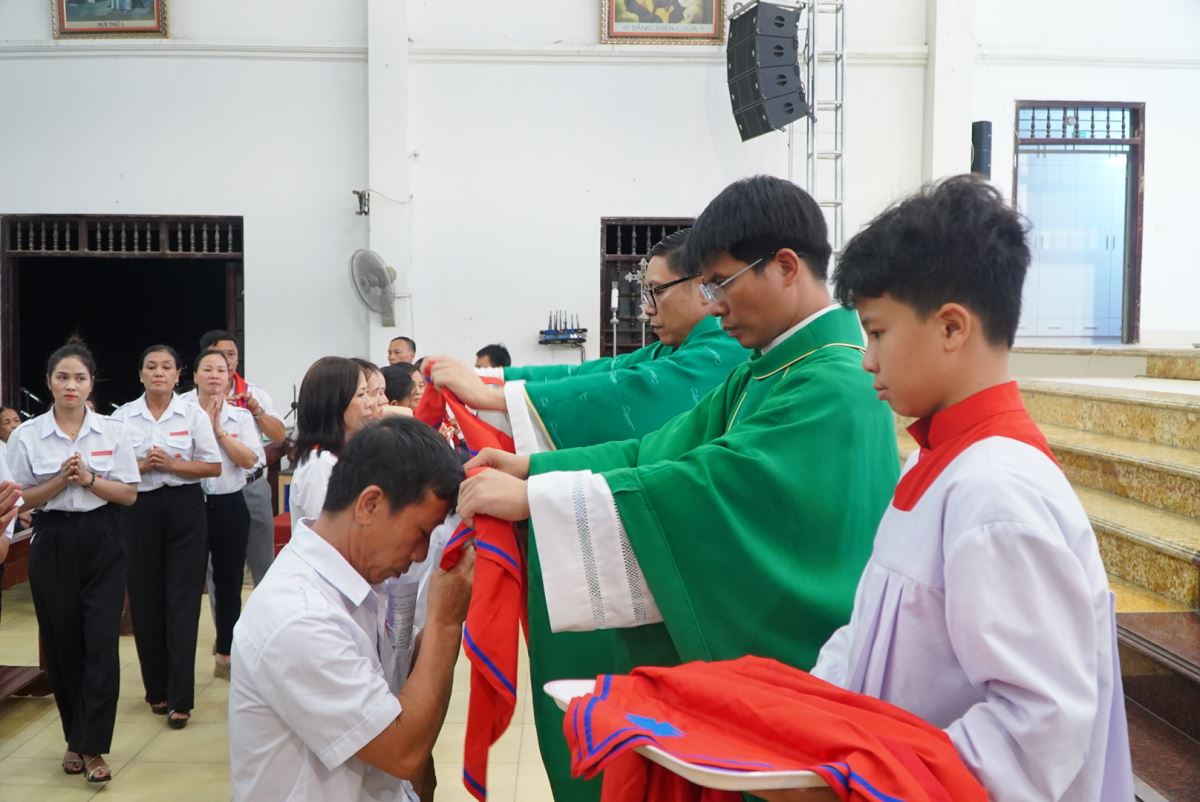 Từng người lãnh nhận nghi thức đặt tay chúc lành của quý Cha, rồi trang nghiêm tiến lên nhận khăn Trợ tá và chứng chỉ giáo lý viên cấp I. Từ giây phút ấy, họ chính thức trở thành những tân giáo lý viên – những “người thợ gặt” mới được sai đi vào cánh đồng truyền giáo nơi quê hương mình.