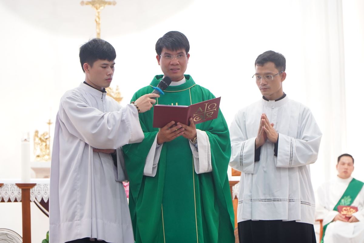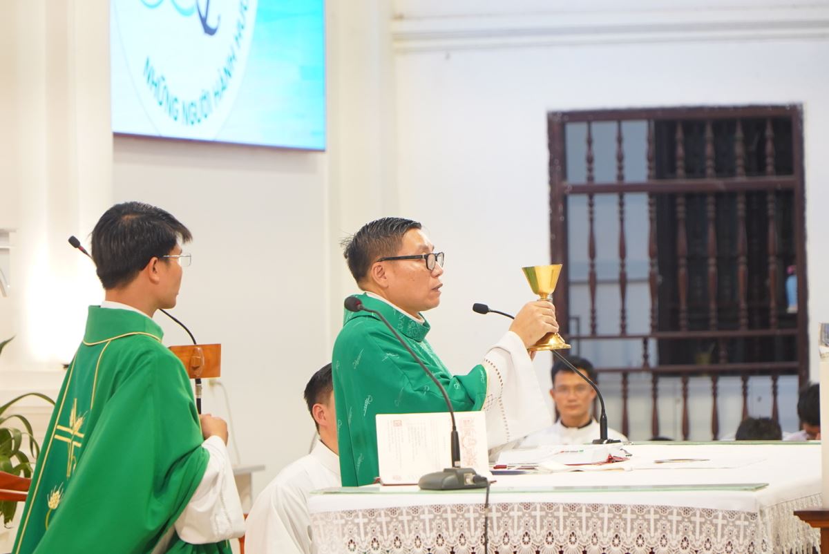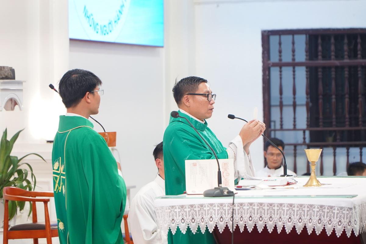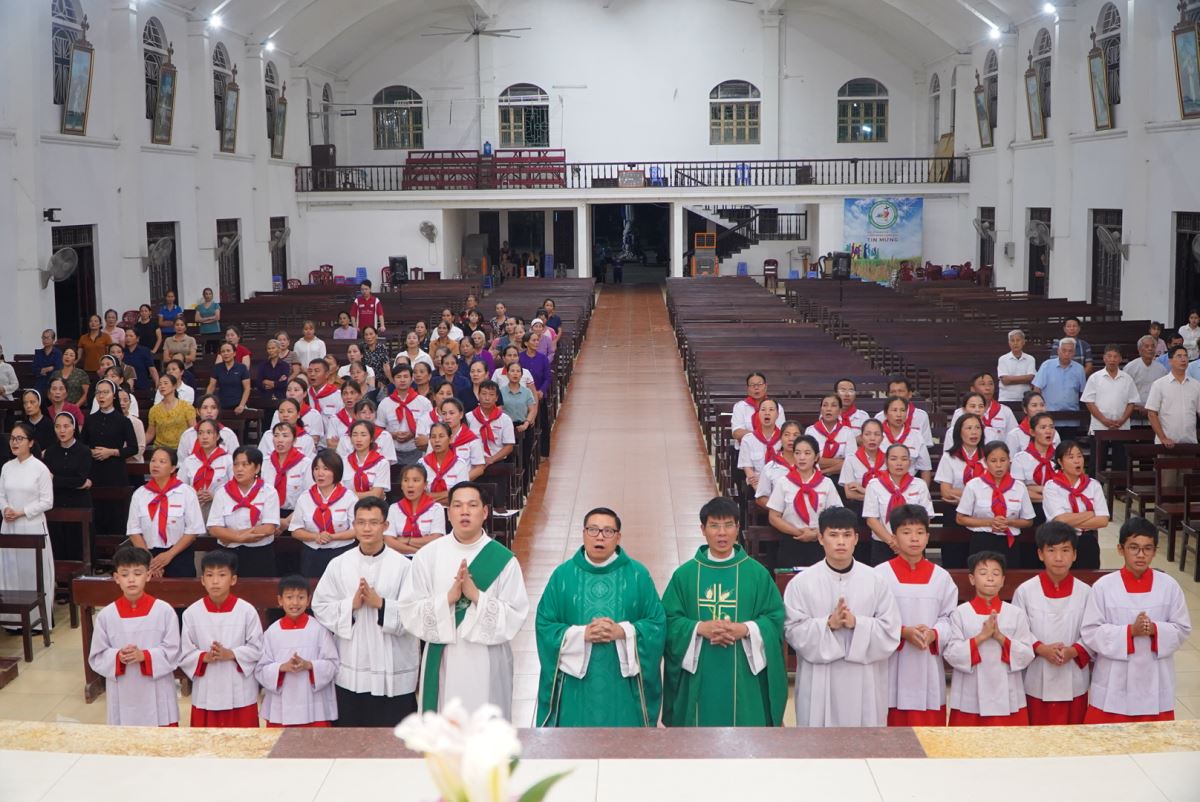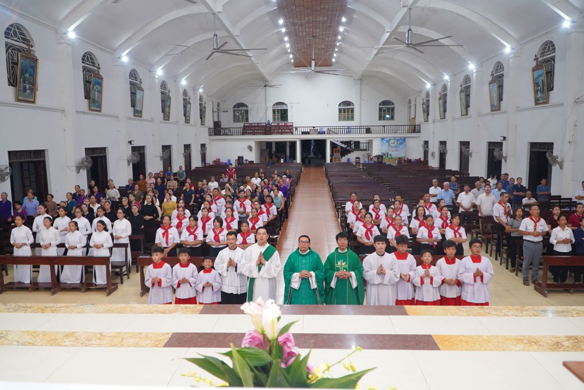 Vào lúc 19g45 thứ Năm, ngày 04/9/2025, tại ngôi nhà Đa Năng của giáo xứ, cha xứ Antôn Vũ Thái San đã chủ tế Thánh lễ Tạ ơn kết thúc khóa học. Đồng tế với ngài có cha Phêrô Nguyễn Văn Sơn – Phó chủ tịch UBGLĐT Giáo phận. Hiệp dâng Thánh lễ còn có thầy Phó tế Phanxicô Xavie Lê Văn Tiến, thầy xứ Gioan Hồ Văn Chục, quý Dì cộng đoàn MTG Hoàng Xá, quý chức Hội Đồng giáo xứ, Ban Giáo vụ, Ban Giảng huấn, các học viên lớp sư phạm cùng cộng đoàn dân Chúa.