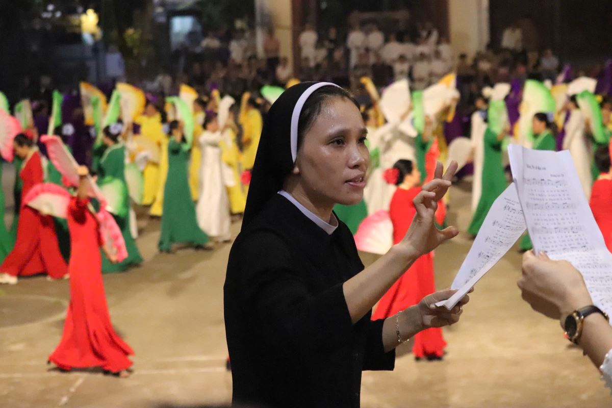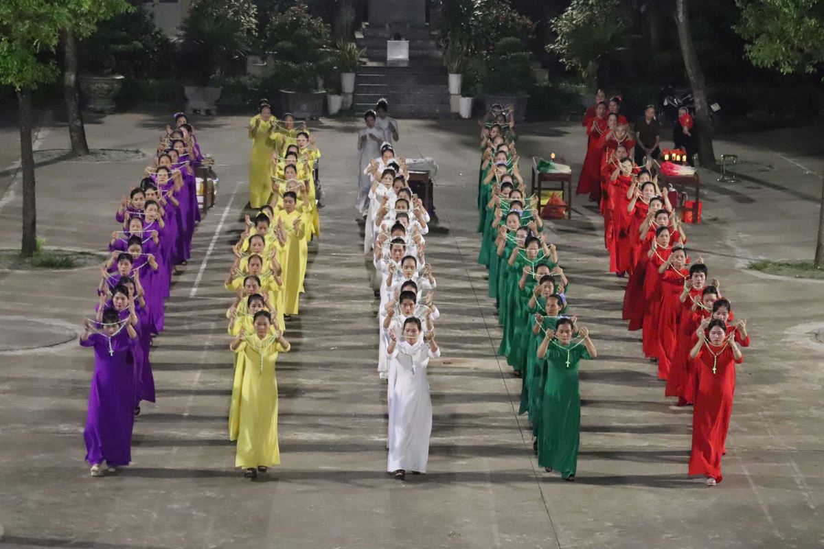 Khi những lời ca tôn vinh Mẹ được cất lên thì những điệu múa uyển chuyển, nhẹ nhàng và duyên dáng của các chị em hoa viên cũng được hoà nhịp tạo nên một khung cảnh thật sống động, thanh nhã và sốt sáng.