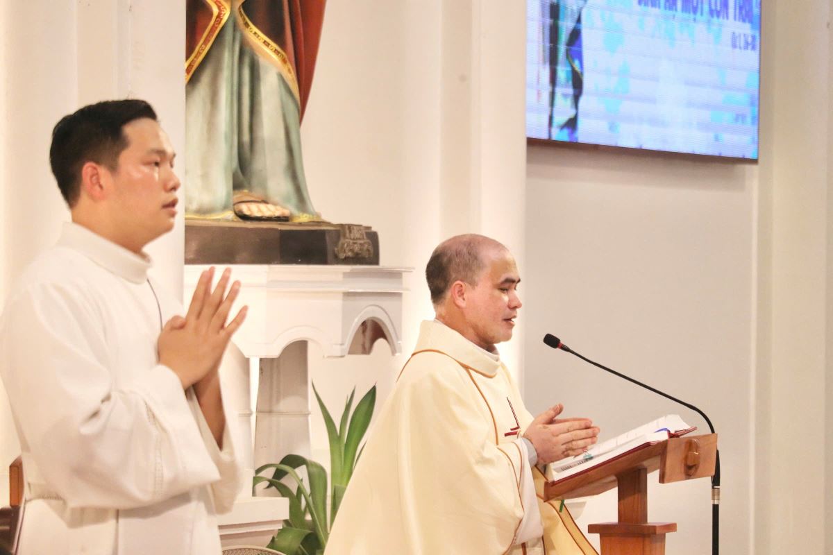Trong bài giảng, Cha Giuse chia sẻ: Giáo Hội đã tôn vinh Đức Maria với nhiều tước hiệu cao quý, và hôm nay, toàn thể Giáo Hội hân hoan mừng kính Mẹ dưới tước hiệu Đức Mẹ Mân Côi. Cha mời gọi cộng đoàn cùng chiêm ngắm và khám phá mầu nhiệm nơi Đức Maria, đồng thời nhận ra chính mầu nhiệm cứu độ nơi mỗi người chúng ta.