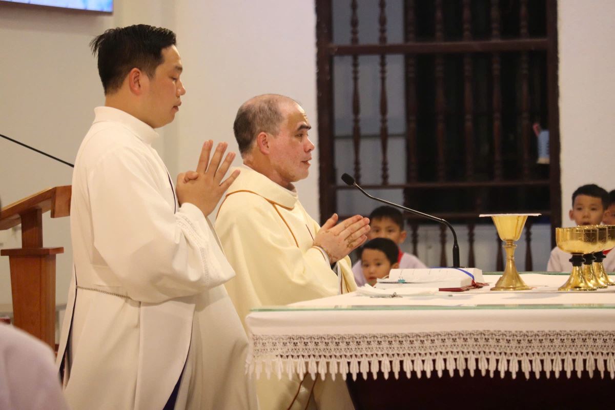 Thánh lễ tiếp tục với phụng vụ Thánh Thể và khép lại lúc 20g45 qua phép lành cuối lễ của Cha chủ sự Giuse.