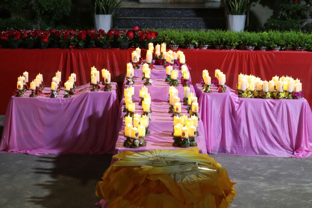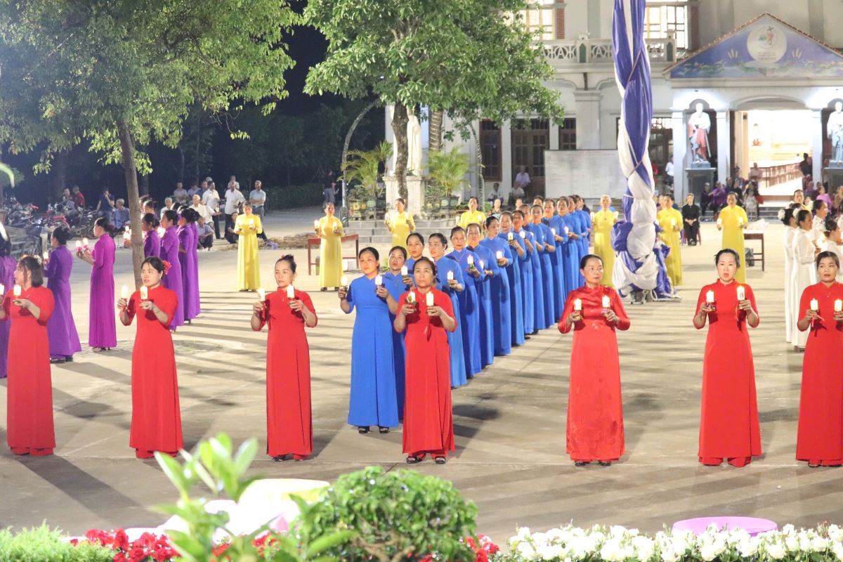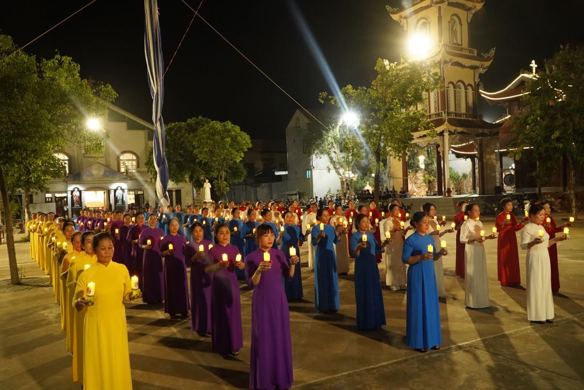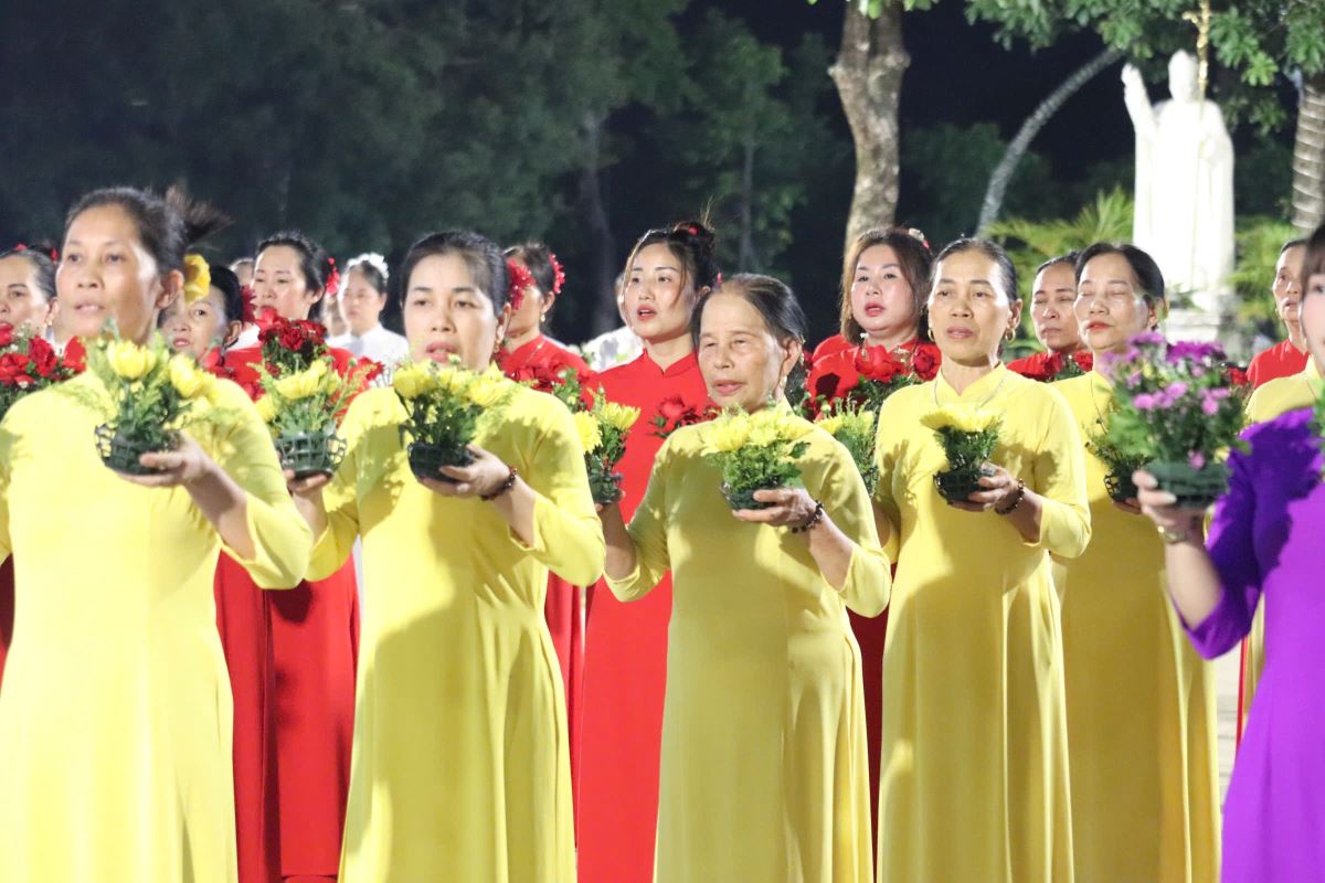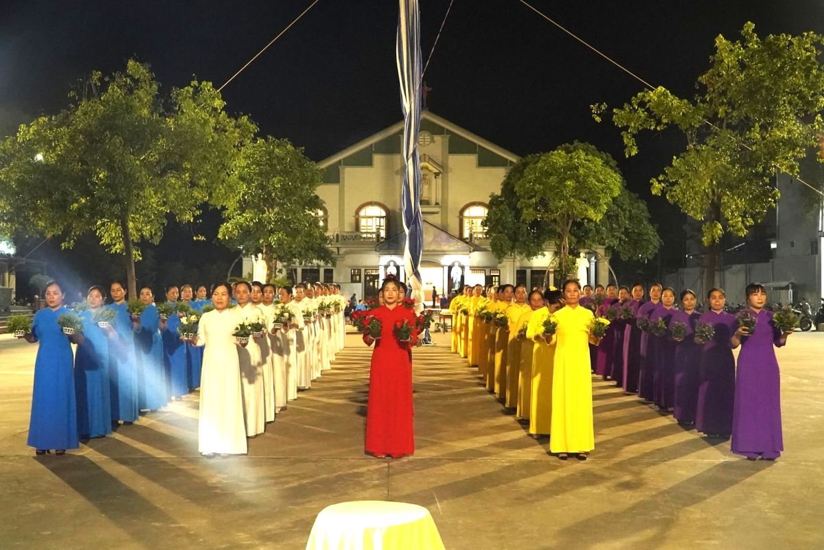 Vào lúc 19g15, trước tượng đài Lòng Chúa Thương Xót, toàn thể cộng đoàn đã hiệp ý với quý bà, quý chị trong Đội Hoa Trái Tim để dâng lên Chúa những bông hoa tươi thắm, những ngọn nến lung linh, những giai điệu của tiếng đàn và lời hát hoà quyện với những nhịp điệu nhẹ nhàng, uyển chuyển tạo nên một không gian thật đẹp và một bầu khí thật nhiều cảm xúc.