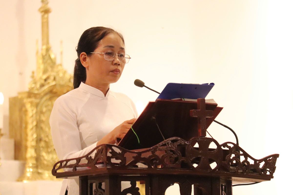 Thầy Phó Tế đã mượn lời bài hát “Chúa là hạnh phúc đời con” của nhạc sĩ Đinh Công Huỳnh và mời gọi cộng đoàn cùng hát, cùng cảm nhận tình yêu và hạnh phúc mà Chúa đã thương ban cho đoàn chiên của Ngài.