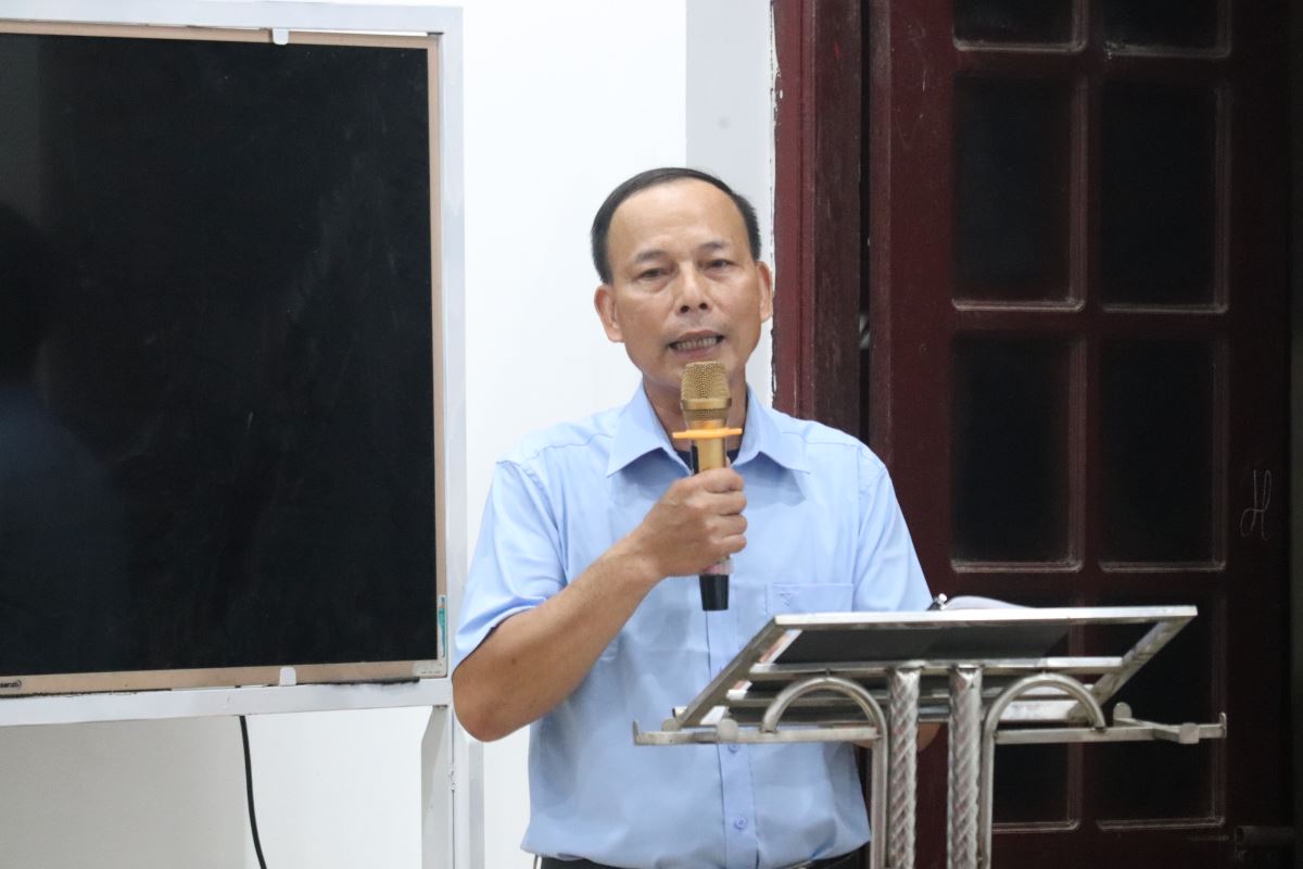 Sau đó, ông Phêrô Nguyễn Văn Hải, Chủ tịch Hội đồng Giáo xứ, cũng đã có lời tri ân các học viên và khuyến khích anh chị em tiếp tục sống tinh thần tông đồ trong công tác giảng dạy giáo lý, góp phần xây dựng đời sống đức tin cho cộng đoàn. Ông Phêrô Nguyễn Văn Hải - Chủ tịch Hội đồng Giáo xứ phát biểu |
