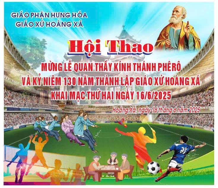 Vào lúc 15g00 thứ Hai, ngày 16/6/2025, tại khuôn viên Giáo xứ Hoàng Xá đã Khai Mạc Hội Thao hướng tới ngày lễ Quan Thầy kính Thánh Phêrô Tông Đồ và kỷ niệm 130 năm thành lập Giáo xứ.