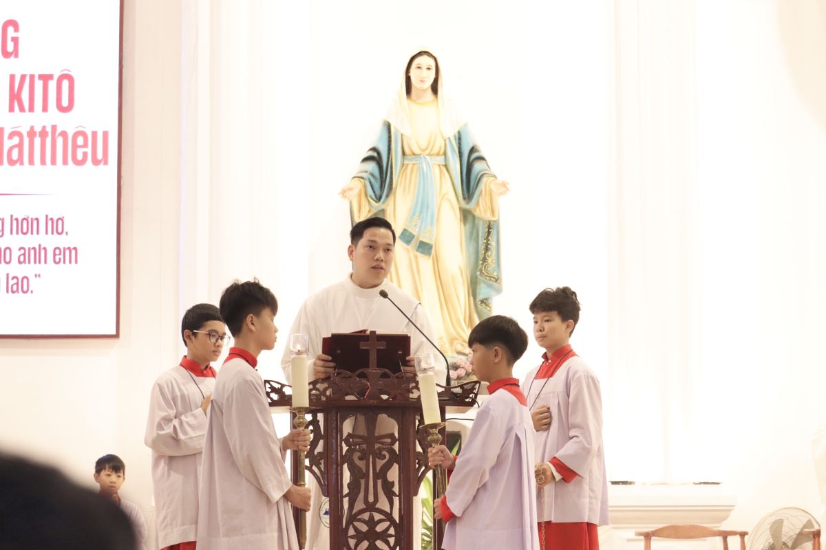 “Nên Thánh” là chủ đề xuyên suốt trong bài giảng mà Thầy phó tế Phanxicô muốn nhắn nhủ tới cộng đoàn. Thầy nhấn mạnh rằng: “Người nên thánh không phải là người không bao giờ sa ngã, nhưng là người biết đứng dậy sau vấp ngã để nên tốt hơn.” Trích sách Khải Huyền, Thầy nhắc lại lời Thánh Gioan: “Họ là những người đã đến sau khi trải qua cơn thử thách lớn lao, họ đã giặt sạch và tẩy áo mình trong máu Con Chiên.”