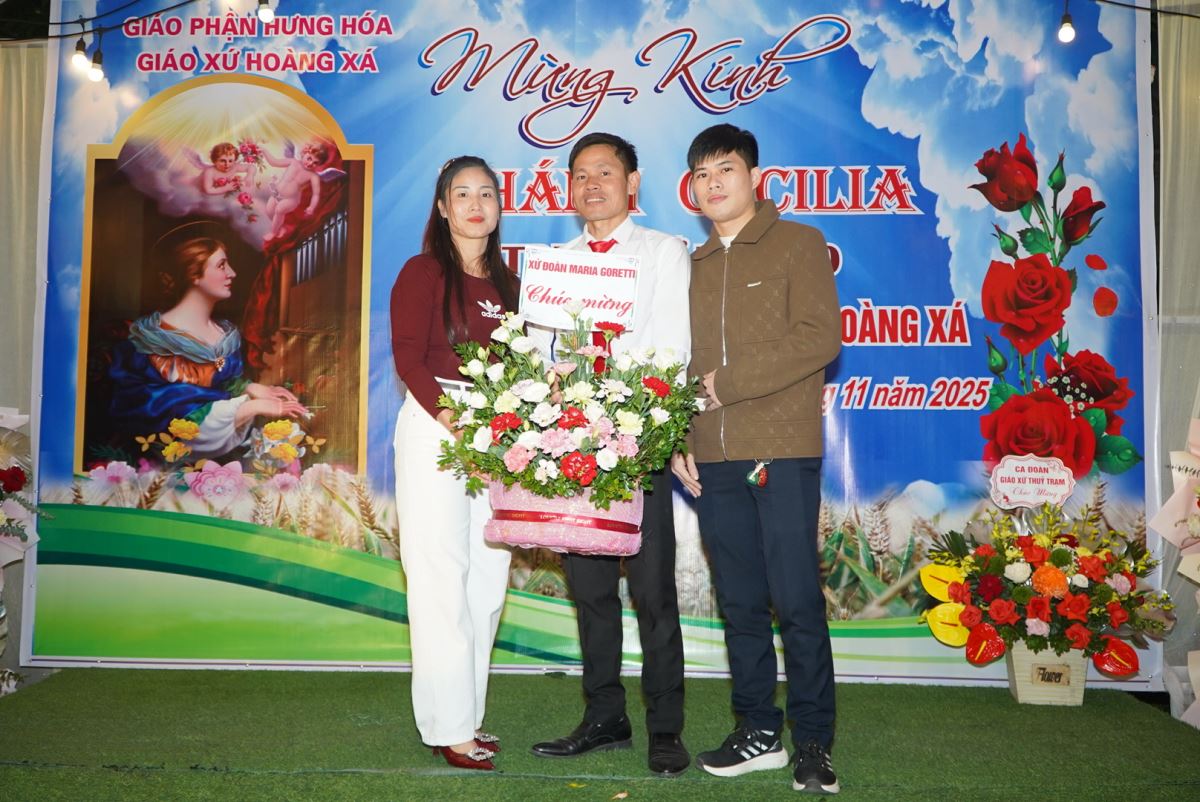 Sau Thánh lễ, Ca đoàn Cêcilia Hoàng Xá vui mừng nhận những món quà chúc mừng đầy ý nghĩa từ các ca đoàn bạn và các hội đoàn trong dịp lễ Quan Thầy. Mọi người cùng chung vui trong bầu khí thân tình qua những lời chúc, các bài thánh ca và những vũ điệu sôi động, làm cho ngày Hành hương và lễ Quan Thầy thêm phần sinh động và ý nghĩa.
