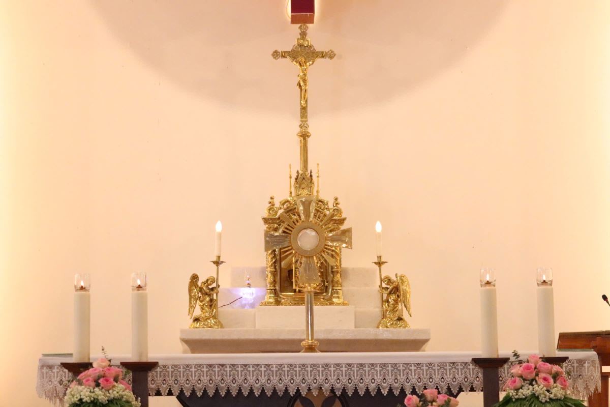 Sau đó, thầy Phó tế Matthêu Nguyễn Công Lý đặt Mình Thánh Chúa để cộng đoàn sốt sắng chầu Thánh Thể.