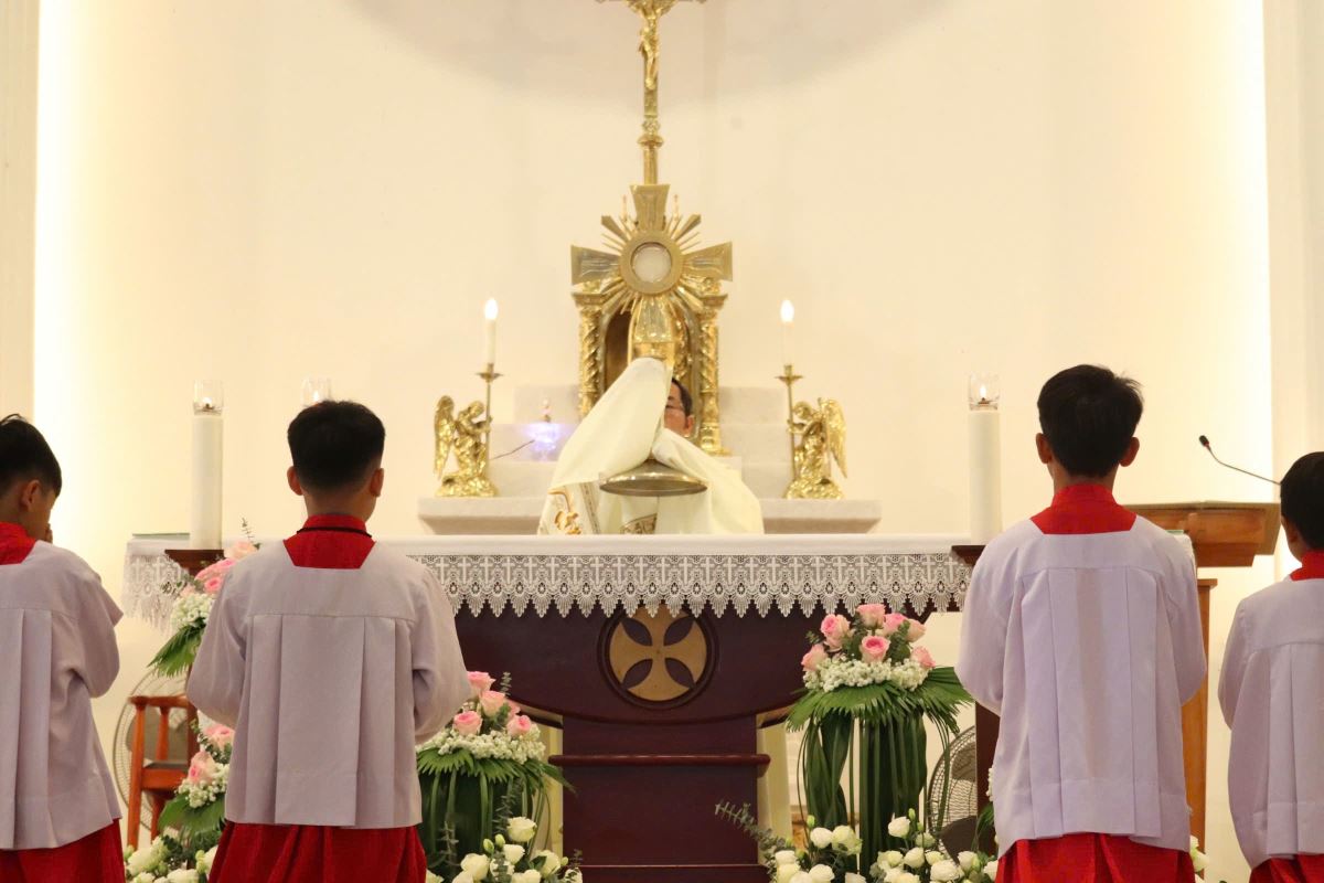 Thánh lễ bắt đầu lúc 16g00, do cha Vinh Sơn Vũ Văn Nguyện chủ tế, cùng đồng tế có quý Cha trong giáo hạt.