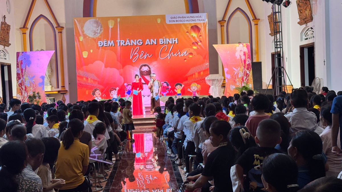 WGPHH - Tết Trung Thu, Tết của tuổi thơ, giáo xứ Hương Tran lại một lần nữa rộn ràng tiếng cười, ánh mắt trẻ thơ rực sáng niềm vui trong chương trình đêm hội mang chủ đề: “Đêm Trăng An Bình Bên Chúa”, diễn ra vào tối thứ Hai ngày 06/10/2025 (tức ngày 15/8 Âm lịch).