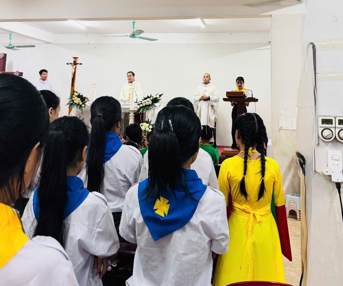 Đúng 18h30, cộng đoàn cùng quy tụ nơi bàn tiệc Thánh Thể để tham dự Thánh lễ, do Cha Giuse Nguyễn Văn Toàn chủ tế. Bầu khí trang nghiêm nhưng chan chứa tình thân. Trong lời giảng lễ, Cha Xứ Gioan Phaolo Trần Anh Tiến đã khơi dậy nơi các em thiếu nhi lòng biết ơn và sống ngoan hiền dưới ánh nhìn yêu thương của Chúa Giêsu, Người Bạn đồng hành tuyệt vời trong mọi hành trình tuổi thơ.