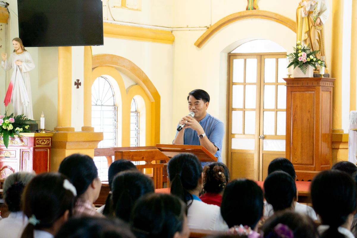 Tiếp đó, cộng đoàn được lắng nghe phần chia sẻ chuyên đề về ý nghĩa và ân phúc của Năm Thánh do cha Giuse Đặng Đức Súy phụ trách, giúp các tín hữu hiểu rõ hơn tinh thần hoán cải và canh tân đời sống trong Năm Toàn xá.