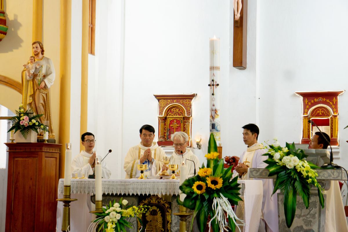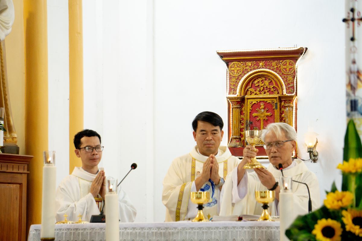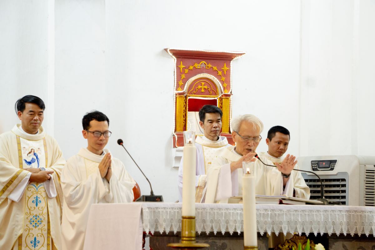 Đỉnh cao của ngày hành hương là Thánh lễ đồng tế trang nghiêm và sốt sắng. Cha Phêrô Phạm Ngọc Chinh, SDB chủ tế, cùng với quý cha trong giáo hạt.