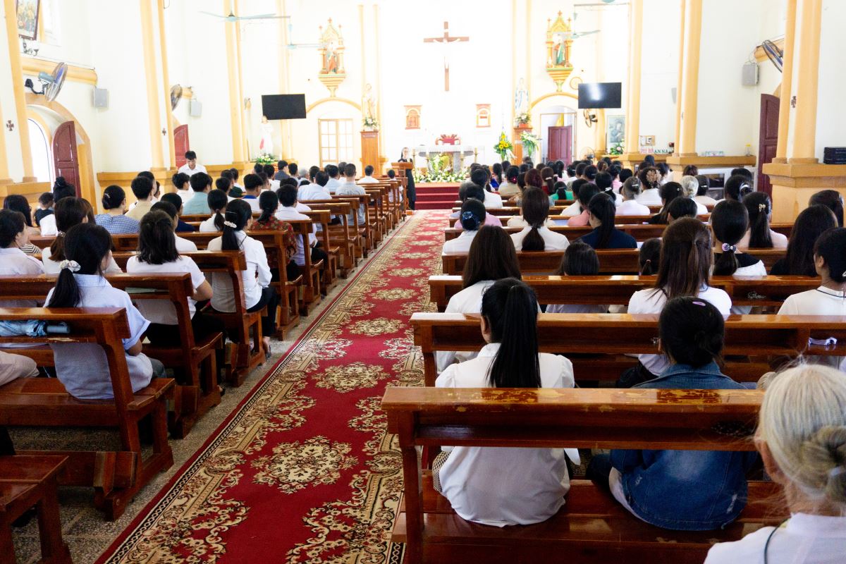 “Theo Chúa mà buồn, phục vụ mà nhăn nhó, là chưa cảm được Chúa.” Niềm vui đích thực của người môn đệ là được sống như Thầy mình yêu thương, phục vụ, và tín thác. Cuối cùng cha mời gọi cộng đoàn hãy biết “lên núi với Chúa”, cầu nguyện, dâng lên Chúa tất cả những gì mình có dù nhỏ bé như “5 chiếc bánh và 2 con cá” để Chúa biến đổi và thực hiện những điều kỳ diệu trong đời sống.
