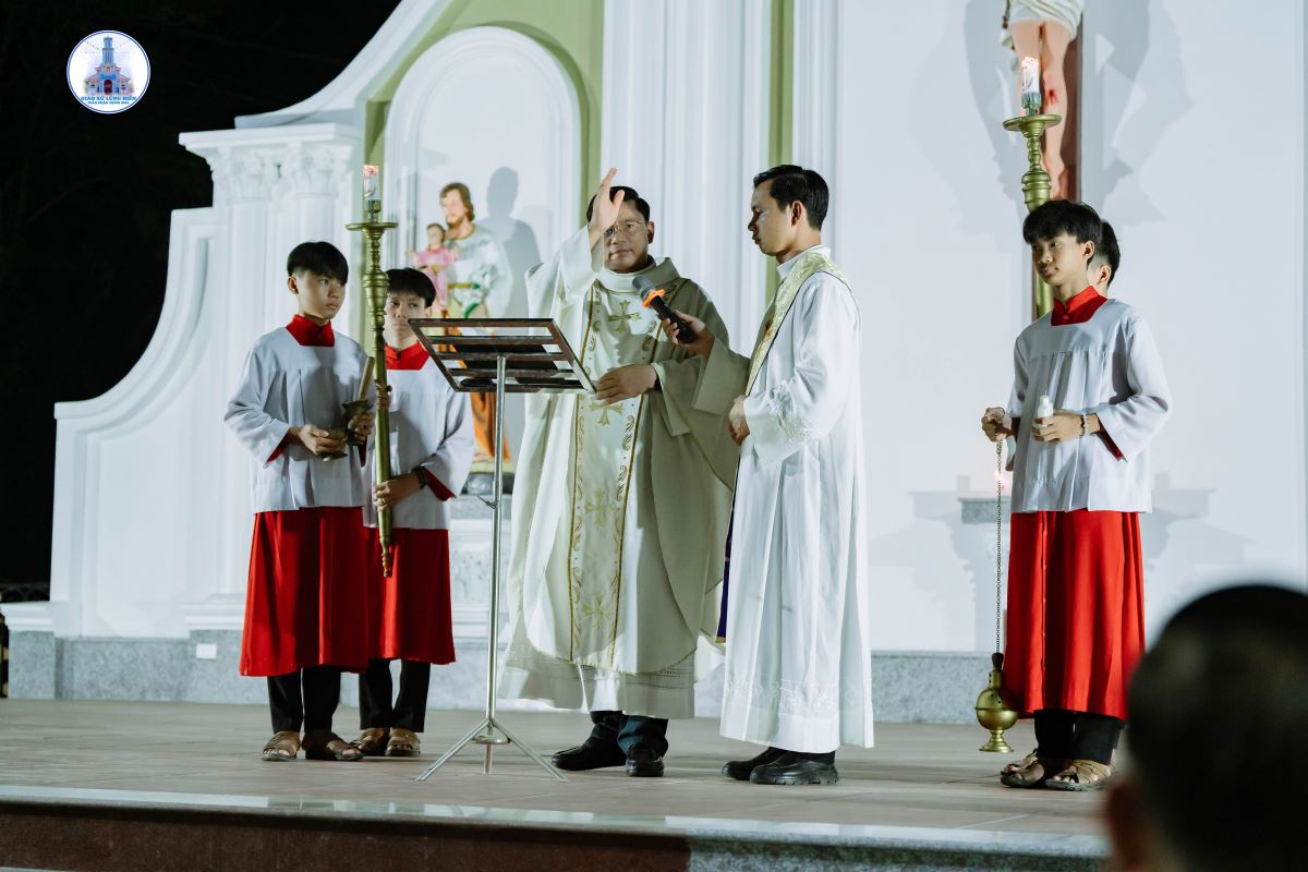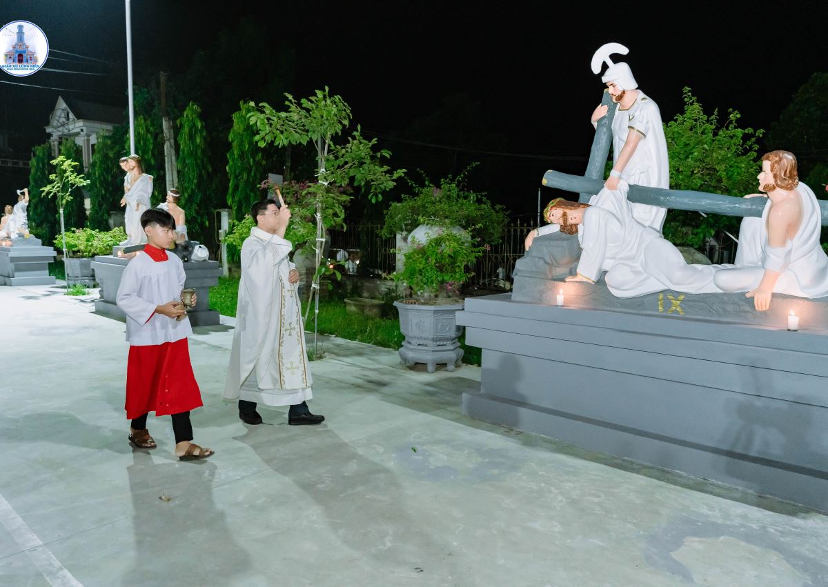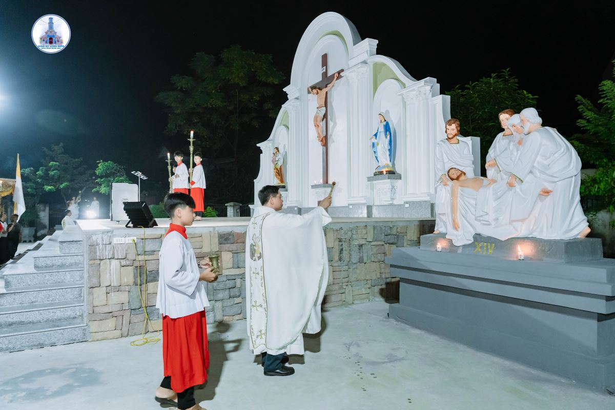 Mở đầu ngày mừng lễ, Cha xứ Giuse Phan Văn Luật đã làm phép tượng 14 sự Thương Khó Đức Chúa Giêsu trong khuôn viên nhà xứ. Kể từ nay, mỗi khi bà con giáo dân đi qua khuôn viên này để tham dự Thánh lễ hay đọc kinh hằng ngày, sẽ được nhắc nhớ về hành trình Đàng Thánh Giá mà xưa Chúa Giêsu đã chịu đau khổ, bị đóng đinh trên Thập giá và sau đó Phục sinh vinh hiển. Công trình này cũng là lời mời gọi mọi người, qua từng thế hệ, biết noi gương Chúa Giêsu sống nhẫn nhịn, thánh thiện, trở nên giống Người hơn, để mai sau được hưởng phúc vinh quang cùng chiêm ngưỡng Thánh Nhan Chúa muôn đời.