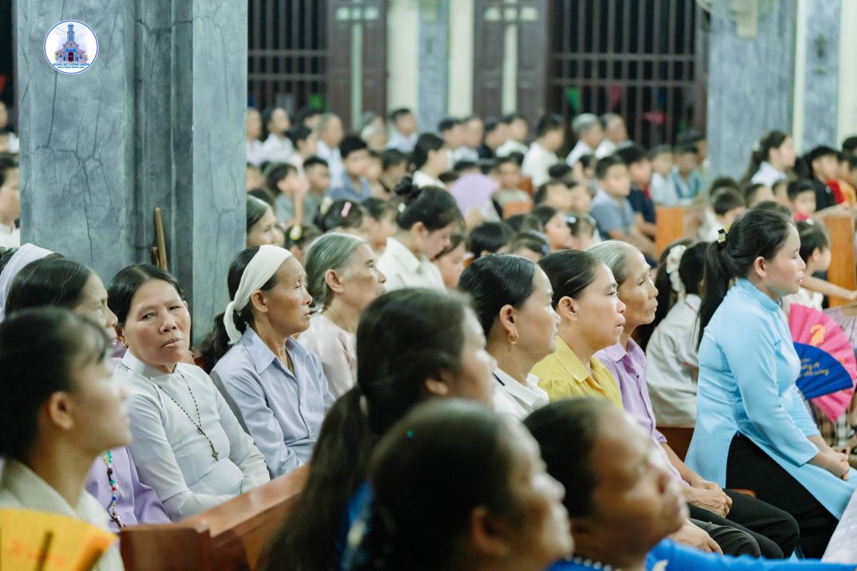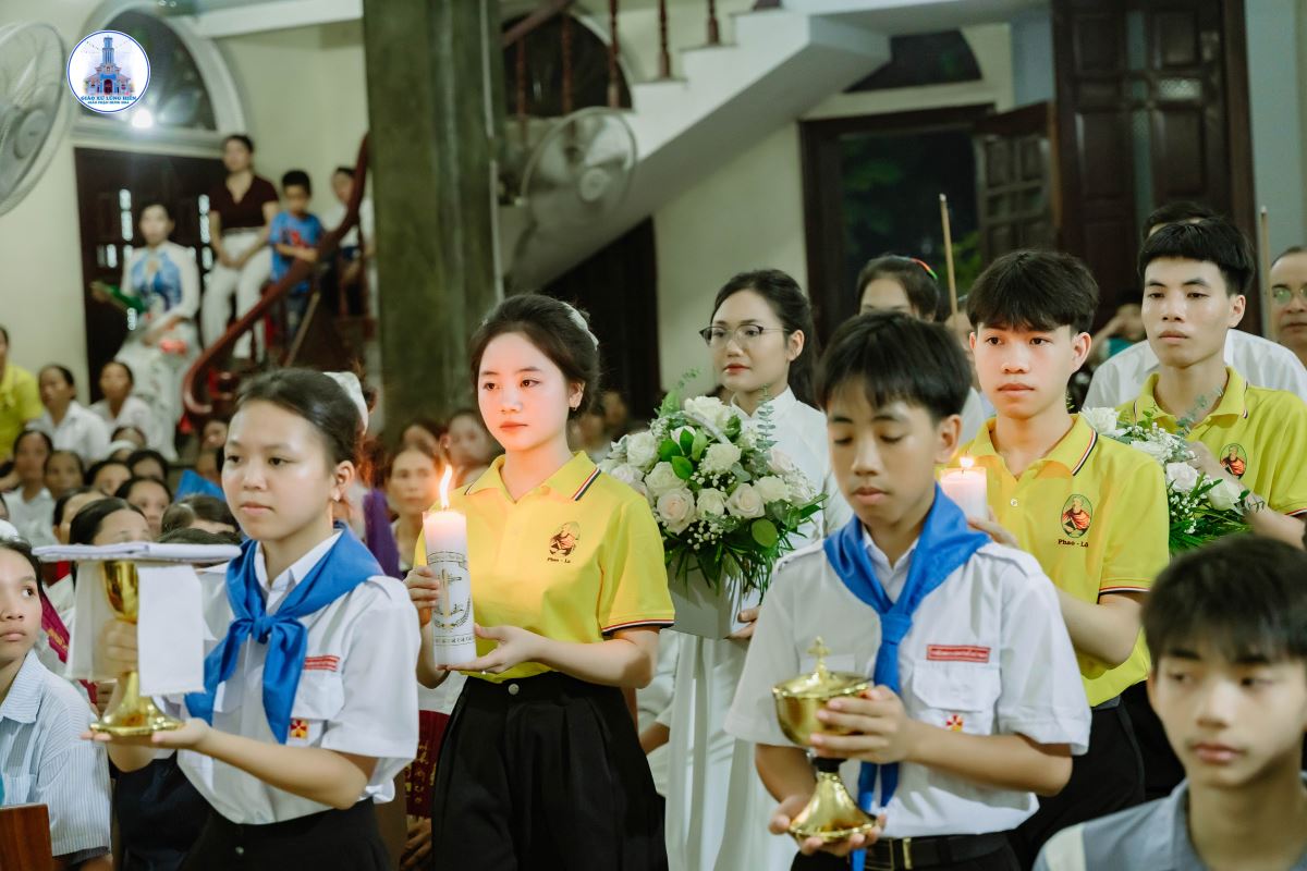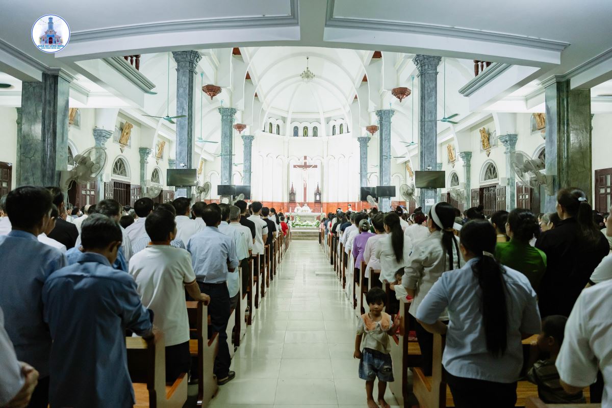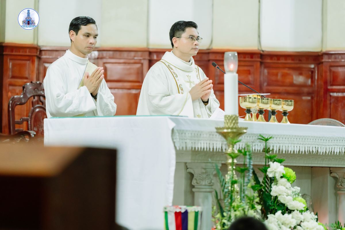 Khoảng 19g45, đoàn rước kiệu Đức Mẹ kết thúc, cộng đoàn chuẩn bị tâm hồn bước vào Thánh lễ do Cha xứ Giuse chủ tế. Đồng tế và phục vụ trong Thánh lễ có Thầy Phó tế Giuse Nguyễn Văn Thưởng, cùng sự hiện diện đông đảo của cộng đoàn dân Chúa.