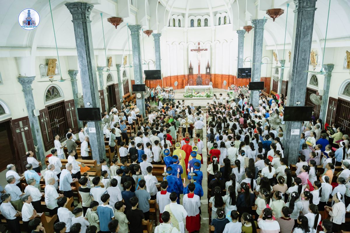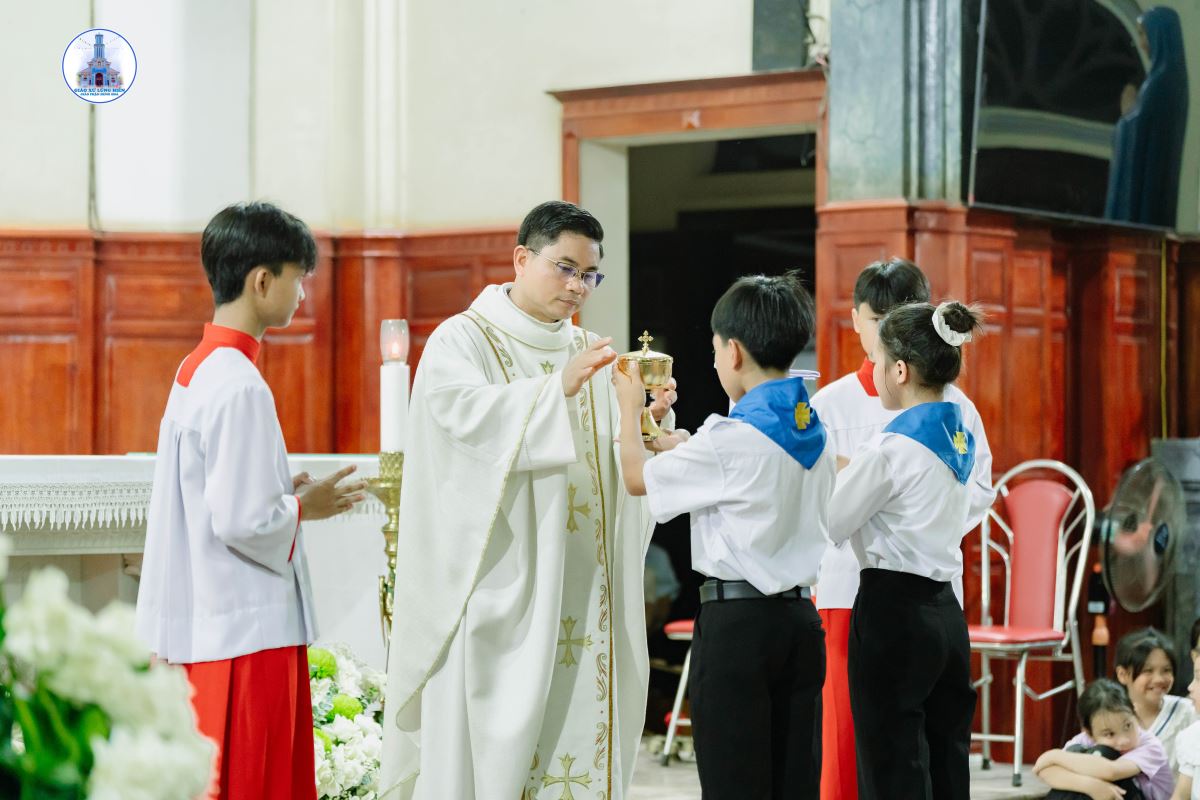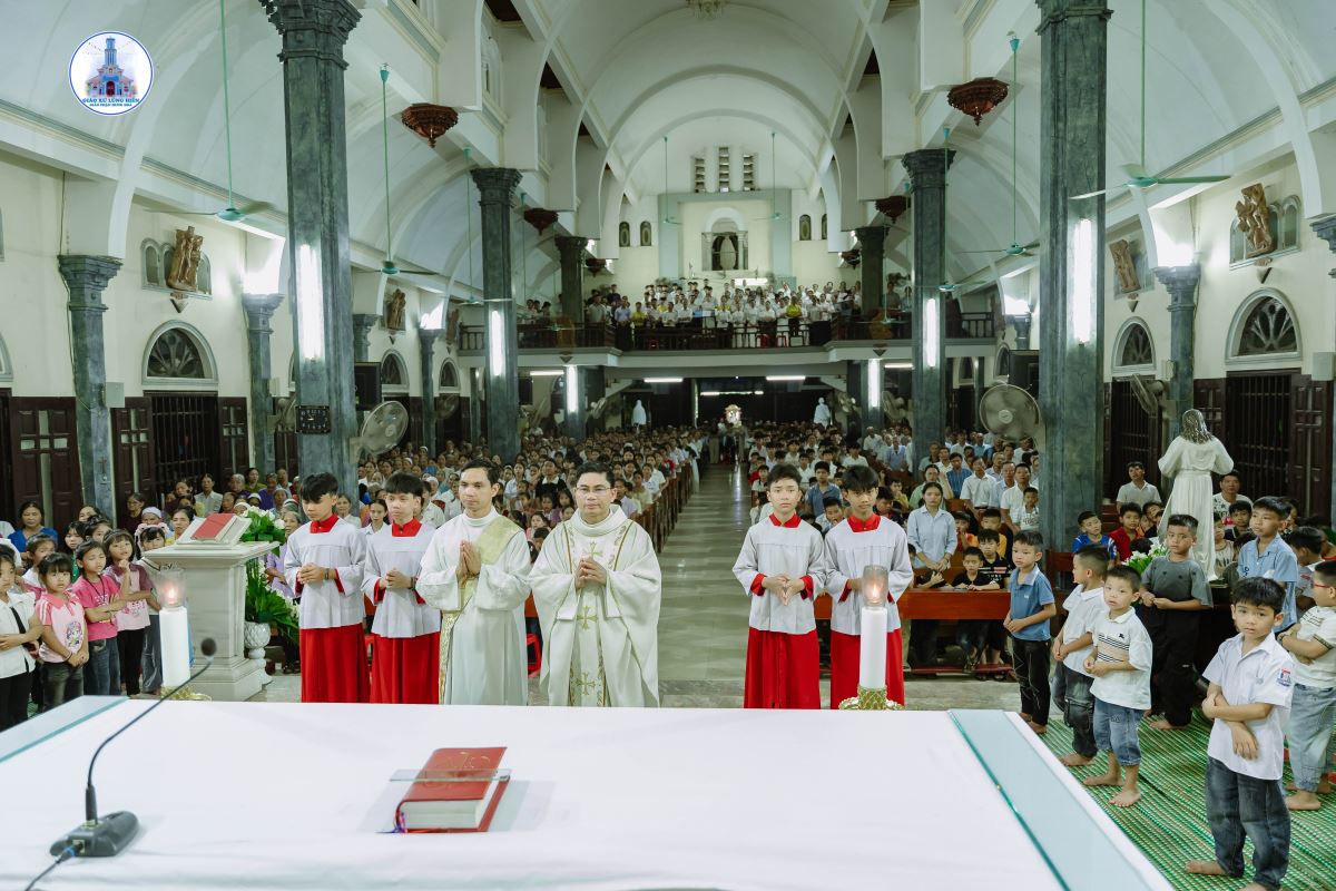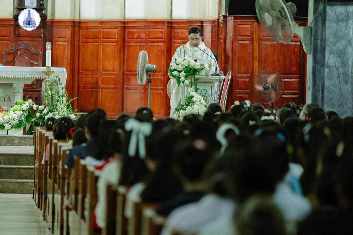 Khoảng 19g45, đoàn rước kiệu Đức Mẹ kết thúc, cộng đoàn chuẩn bị tâm hồn bước vào Thánh lễ do Cha xứ Giuse chủ tế. Đồng tế và phục vụ trong Thánh lễ có Thầy Phó tế Giuse Nguyễn Văn Thưởng, cùng sự hiện diện đông đảo của cộng đoàn dân Chúa.