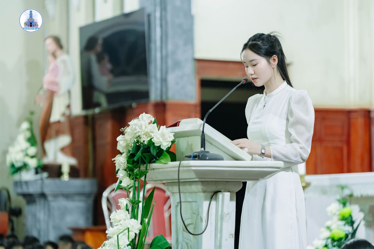 Tiếp đó, Cha xứ dẫn cộng đoàn suy niệm Lời Chúa qua đoạn Tin Mừng theo Thánh Matthêu (Mt 1, 1-16.18-23) trình bày về Gia phả của Đức Giêsu Kitô. Ngài phân tích, Gia phả này mang một ý nghĩa thiêng liêng và sâu xa, cho thấy Chúa Giêsu vừa là con cháu của tổ phụ Áp-ra-ham và vua Đa-vít, vừa là Đấng Thiên Sai đến để loan báo Tin Mừng Nước Trời.