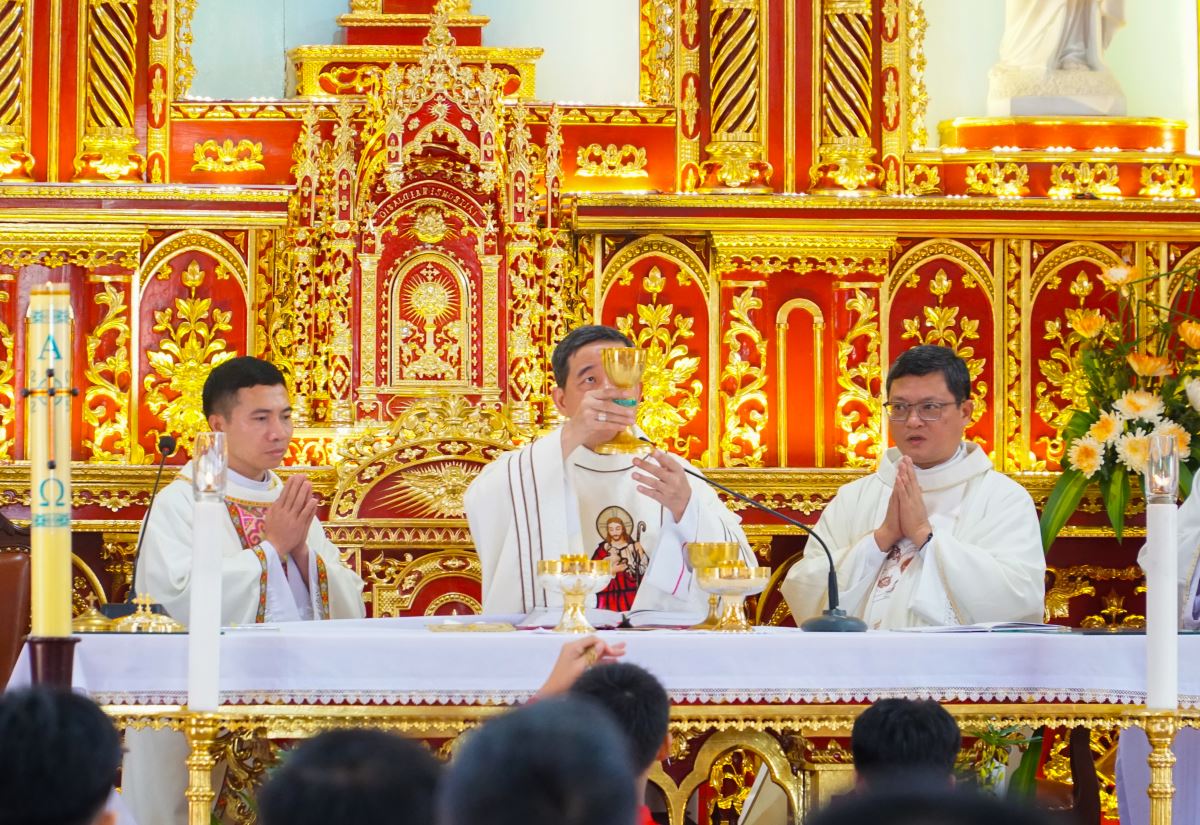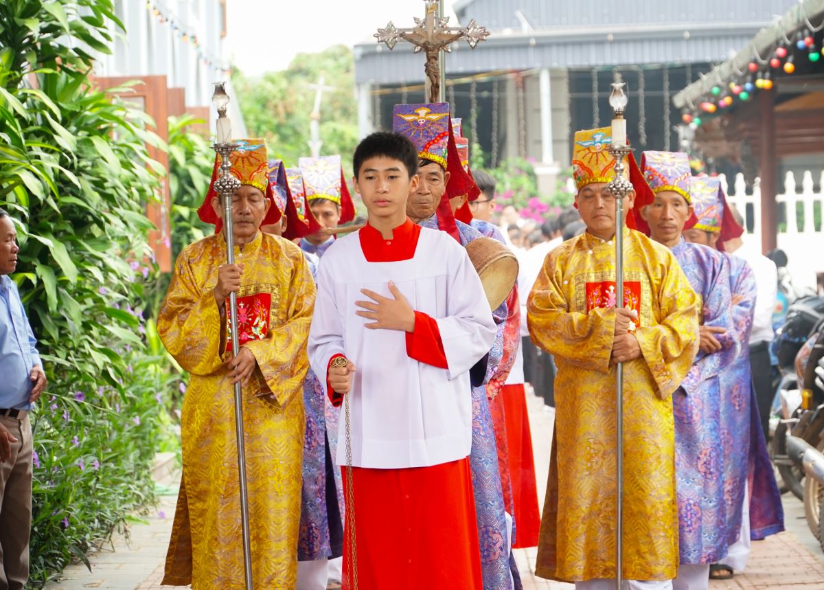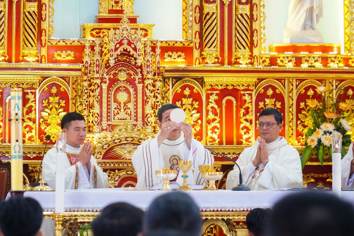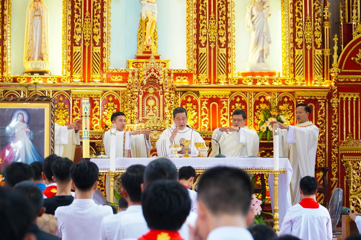 Thánh lễ do Đức Cha Đaminh chủ tế, cùng đồng tế có cha xứ Giuse Nguyễn Tiến Liên, cha Gioan Baotixita Vũ Quốc Đạt, Trưởng Ban loan Báo Tin Mừng Giáo phận Bùi Chu, quý cha đang phục vụ tại giáo xứ Mai Yên, quý dì và cộng đoàn dân Chúa trong và ngoài giáo xứ.