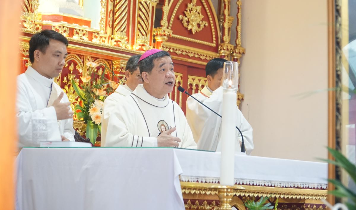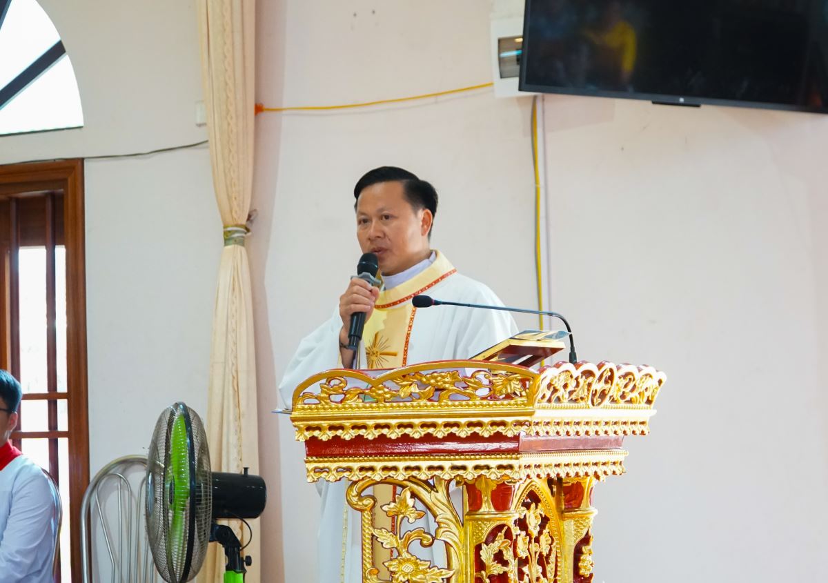 Chia sẻ trong Thánh lễ, Đức cha Đaminh nhấn mạnh ý nghĩa thiêng liêng của Bí tích Thêm Sức, mời gọi các em biết mở lòng để nghe tiếng Chúa Thánh Thần, sống đạo cách trưởng thành và tích cực, trở thành những chứng nhân sống động cho Tin Mừng trong đời sống hằng ngày. Đức cha Đaminh cũng nhắc nhở phụ huynh và cộng đoàn cùng đồng hành, nâng đỡ các em bằng đời sống gương mẫu và cầu nguyện.