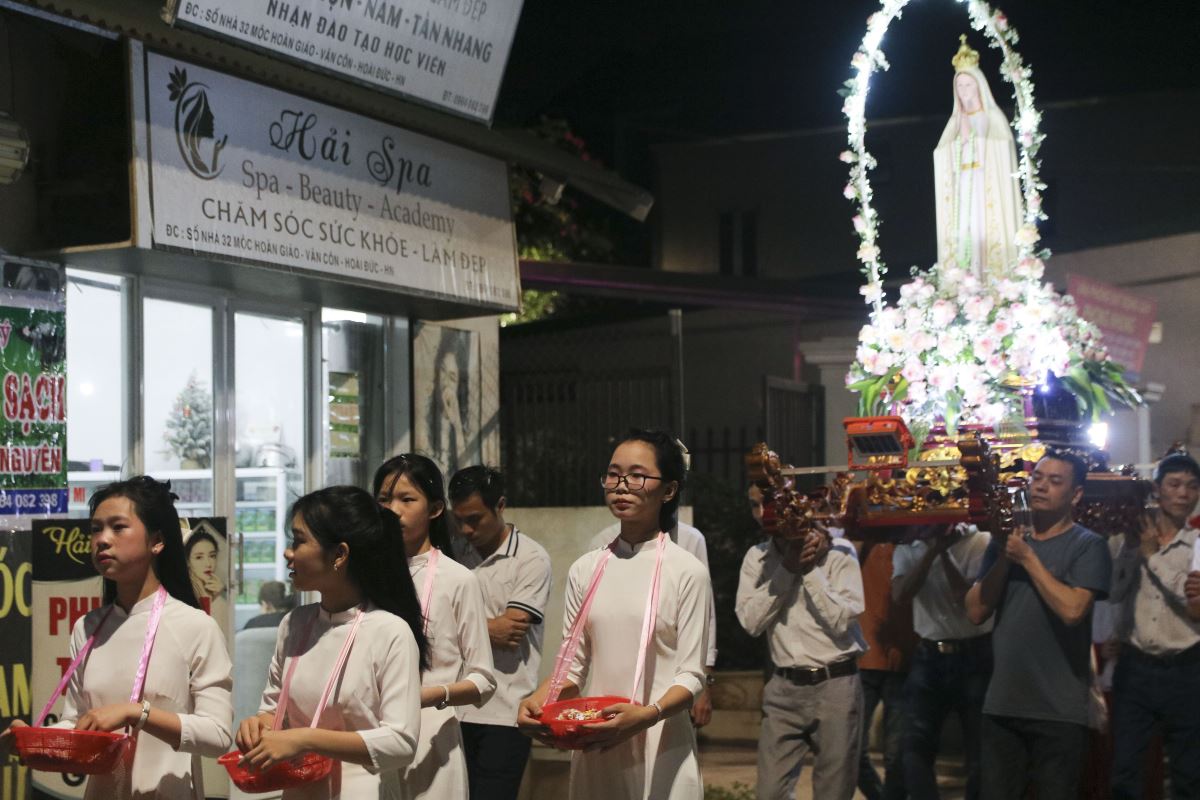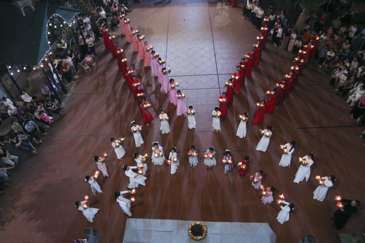 Vào lúc 19g00 thứ Bảy, ngày 03/5/2025, toàn thể cộng đoàn đã quy tụ trong khuôn viên thánh đường và bắt đầu cuộc rước với lòng sốt mến và trang nghiêm, cùng hiệp dâng những đóa hoa tươi thắm – biểu tượng cho lòng yêu mến, tri ân và tôn kính đối với Mẹ Maria – người Mẹ hiền luôn đồng hành, nâng đỡ chúng ta trong hành trình đức tin.