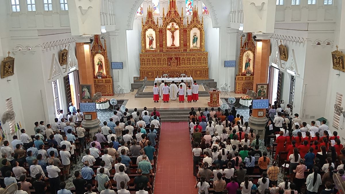 Đến 11g00, cộng đoàn sốt sắng tham dự thánh lễ đồng tế do cha Giuse Nguyễn Văn Tuyến chủ sự.