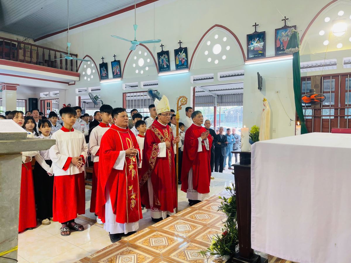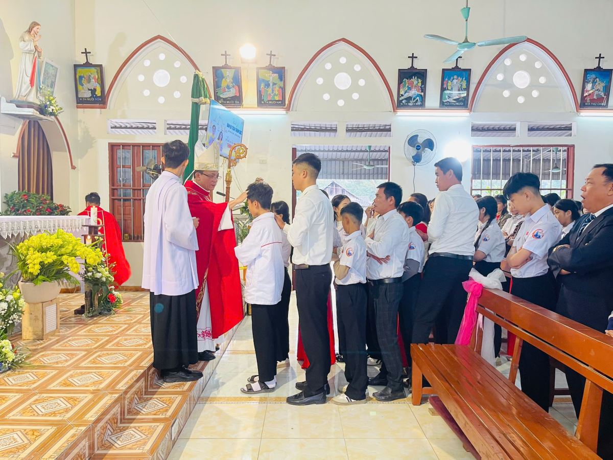 Sau bài giảng, Đức Cha cử hành nghi thức Thêm Sức và xức dầu thánh trên trán cho 49 em, ghi dấu ấn tín ơn Chúa Thánh Thần. Biến cố này không chỉ có ý nghĩa đối với các em và gia đình, mà còn là niềm vinh dự chung của toàn thể cộng đoàn Giáo xứ Mỹ Bằng.