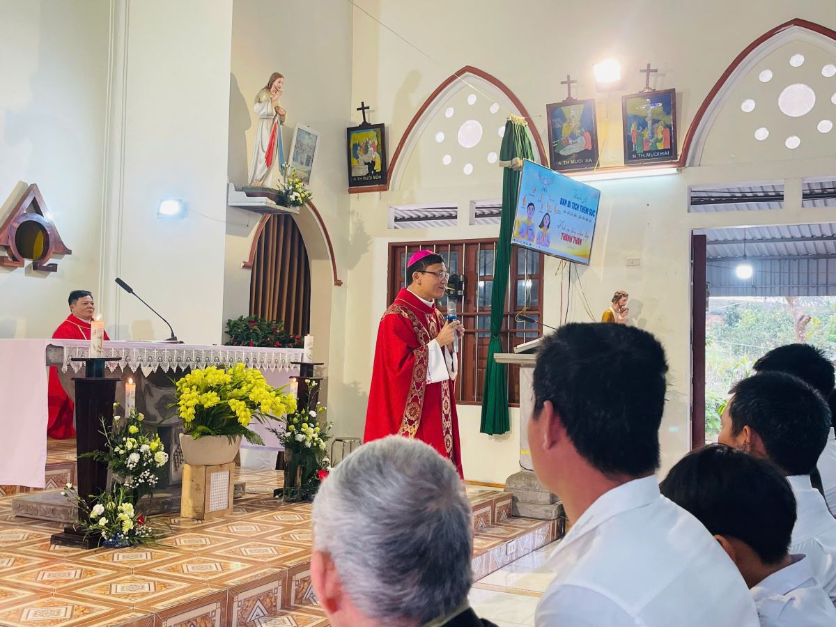 Trong bài giảng, Đức Cha nhấn mạnh vai trò của Chúa Thánh Thần trong đời sống người Kitô hữu, đồng thời mời gọi các em sống ơn gọi Kitô hữu cách cụ thể trong đời sống hằng ngày, để làm chứng cho Tin Mừng giữa lòng thế giới.