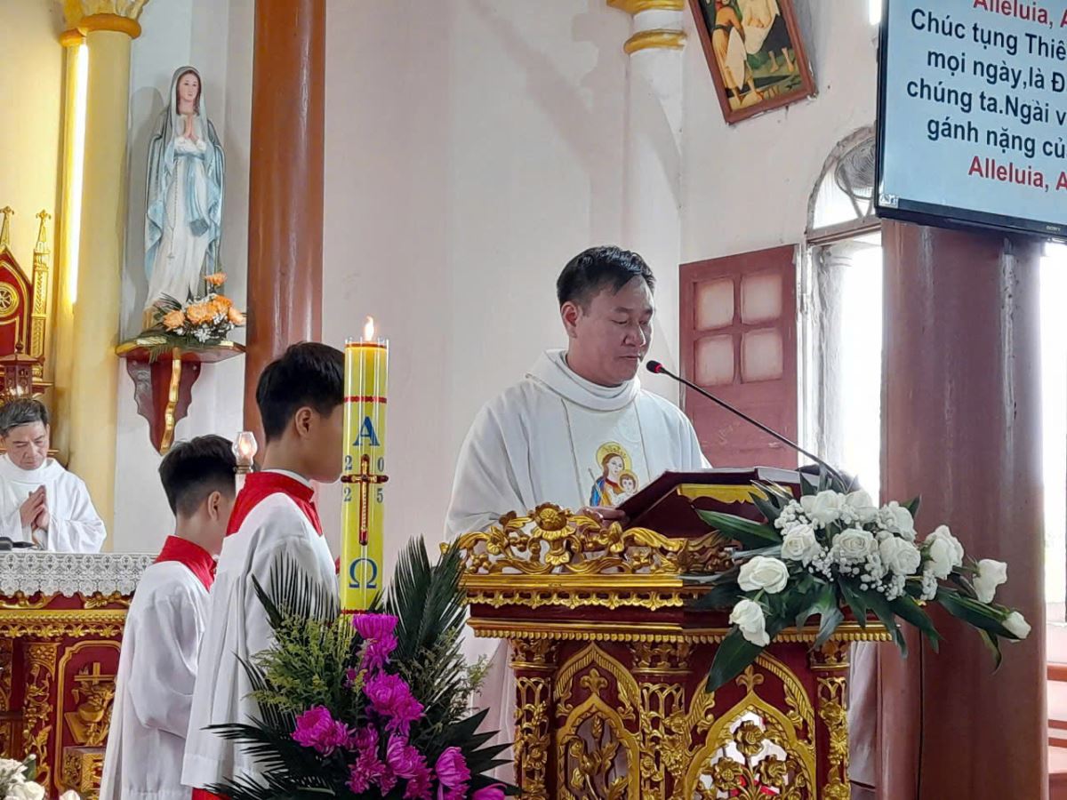 Đỉnh cao là Thánh lễ lúc 10g00 do cha Giuse Đỗ Ngọc Tháp chủ tế. Trong bài giảng, cha Phêrô Trịnh Công Trí đã nối kết Lời Chúa trong ngày lễ kính Thánh Giuse Thợ với từng người. Chúng ta cũng học Chúa Giêsu luôn làm việc và việc làm cao trọng nhất là chết thay cho con người. Theo đó, Thánh Giuse chuyên cần làm việc không chỉ vì miếng cơm manh áo nhưng là xây dựng nước trời. Ngài cũng nhấn mạnh chúng ta trong bất cứ cương vị nào, cũng làm việc không chỉ để xây dựng cuộc sống trần gian, nhưng còn làm việc khác để xây dựng nước trời. Đồng thời Ngài cũng cảnh giác mỗi người, đừng vì chăm chú làm việc trần gian mà lãng quên Thiên Chúa. Theo gương thánh Giuse, chúng ta biết yêu mến lao động, yêu mến Chúa và thi hành các công việc của Chúa để xây dựng vương quốc Thiên Chúa ở trần gian hôm nay và nước trời mai sau.