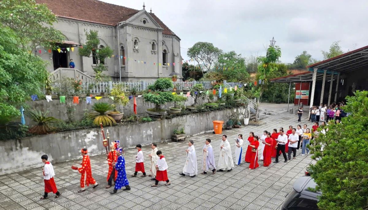 WGPHH - Trong niềm vui mùa Phục Sinh và mừng kính Thánh Giuse Thợ – bổn mạng những người lao động, giáo xứ Mỹ Bằng đã tổ chức hành hương lãnh nhận ơn toàn xá tại nhà thờ Trại Cỏ, giáo xứ Sông Chảy vào sáng thứ Năm, ngày 01 tháng 5 năm 2025.