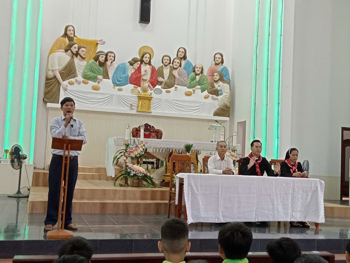 Tiếp đến, ông Giuse Cường, Trưởng ban Giáo lý đức tin của giáo xứ, đã có đôi lời tổng kết năm học 2024–2025 với những điểm tích cực trong công tác dạy và học giáo lý. Đồng thời, ông cũng thông báo việc phân chia lớp học cho năm học 2025–2026, giúp các em ổn định và sẵn sàng bước vào năm học mới với tâm thế mới.