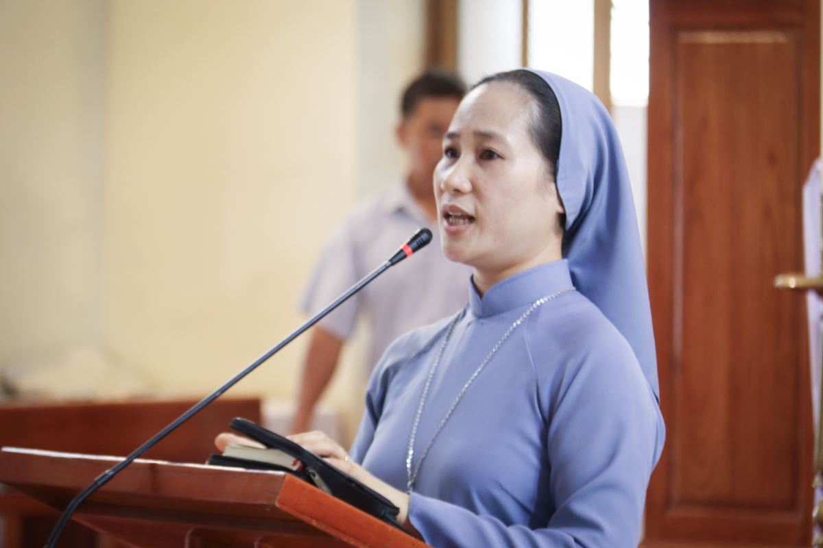 Sau đó, đoàn theo Thánh giá trang nghiêm tiến vào nhà thờ. Tại đây Quý Dì Dòng Con Đức Mẹ Phù Hộ đã hướng dẫn cộng đoàn hồi tâm, xét mình, mời gọi mỗi người nhìn lại đời sống đức tin của mình để biết ăn năn, sám hối và chuẩn bị tâm hồn xứng đáng đón nhận hồng ân Năm Thánh.
