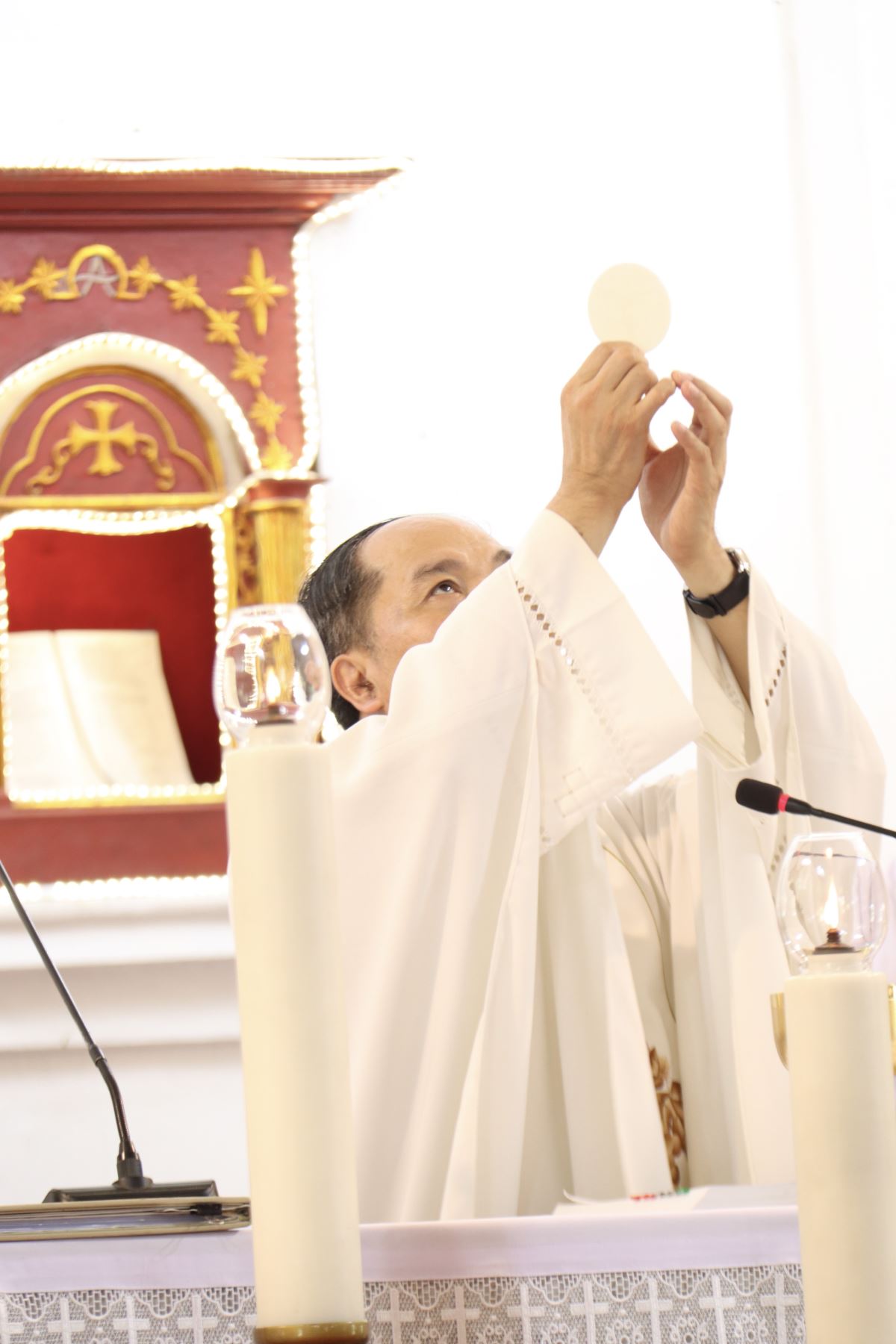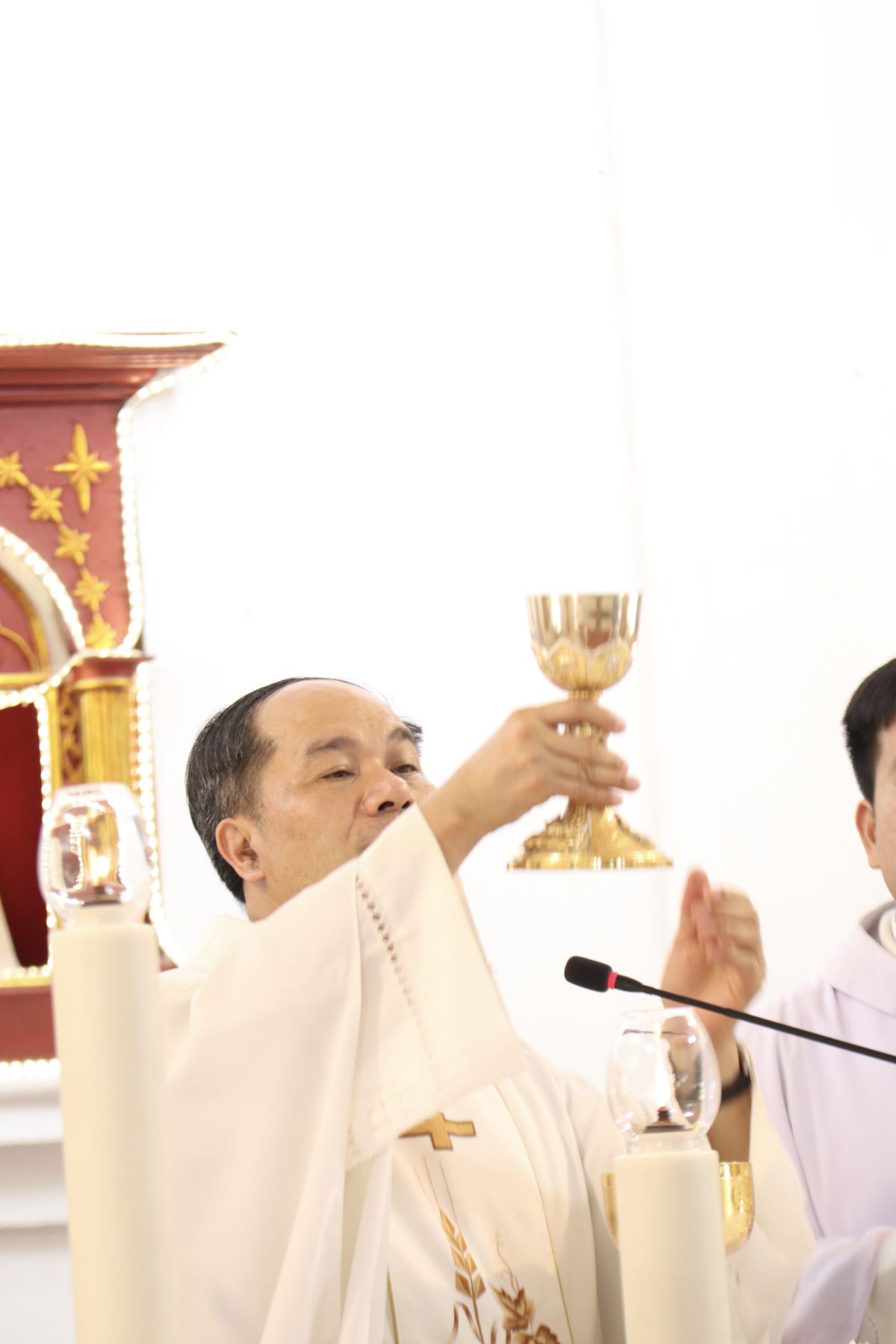 Cao điểm của ngày hành hương là Thánh lễ do Cha Giuse Nguyễn Gia Huấn chủ tế, cùng quý Cha trong phiên trực đồng tế.