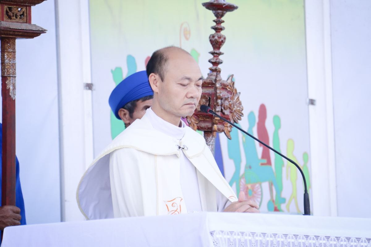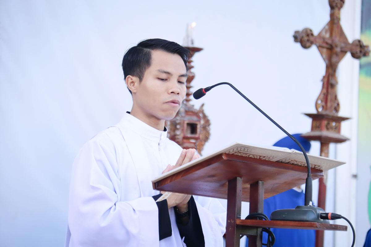 Đúng 7h30, cộng đoàn quy tụ trước sảnh nhà giáo lý để tham dự nghi thức khởi sự do Cha Giuse Nguyễn Văn Cường – Chính xứ Yên Tập chủ sự.