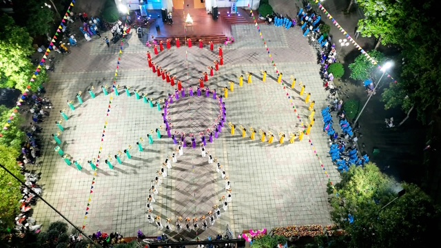 Tiếp nối cuộc rước kiệu là phần dâng hoa của năm đội hoa đến từ các giáo họ trong giáo xứ. Mỗi đội mang một sắc thái riêng biệt trong cách trình bày, tạo nên một bản hòa âm đa dạng nhưng hài hòa trong cùng một tâm tình yêu mến và tôn kính Mẹ Maria. Từng bước chân, từng cử điệu, từng ánh mắt và nụ cười đều phản chiếu sự trang nghiêm, lòng sốt mến và sự thành tâm dâng tiến Mẹ.