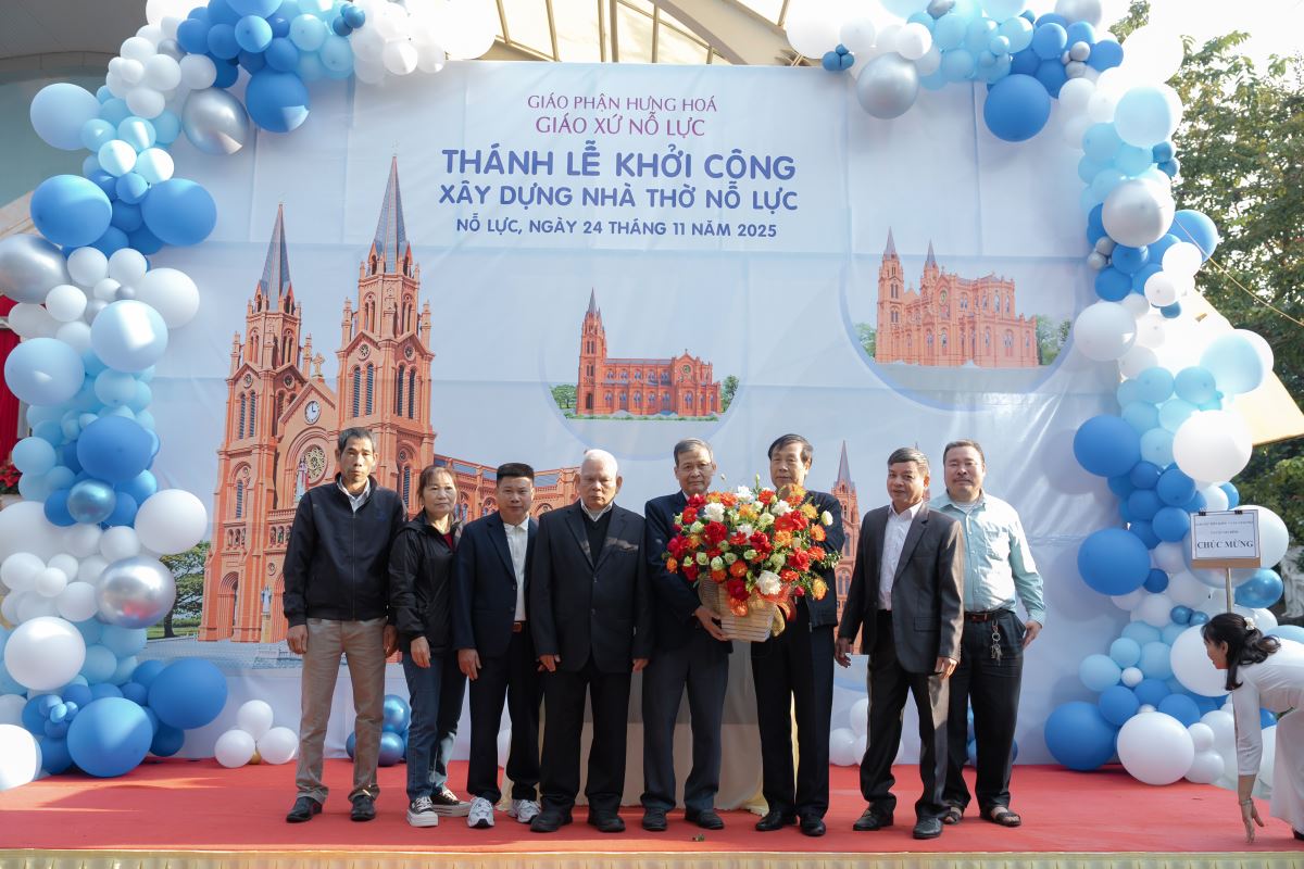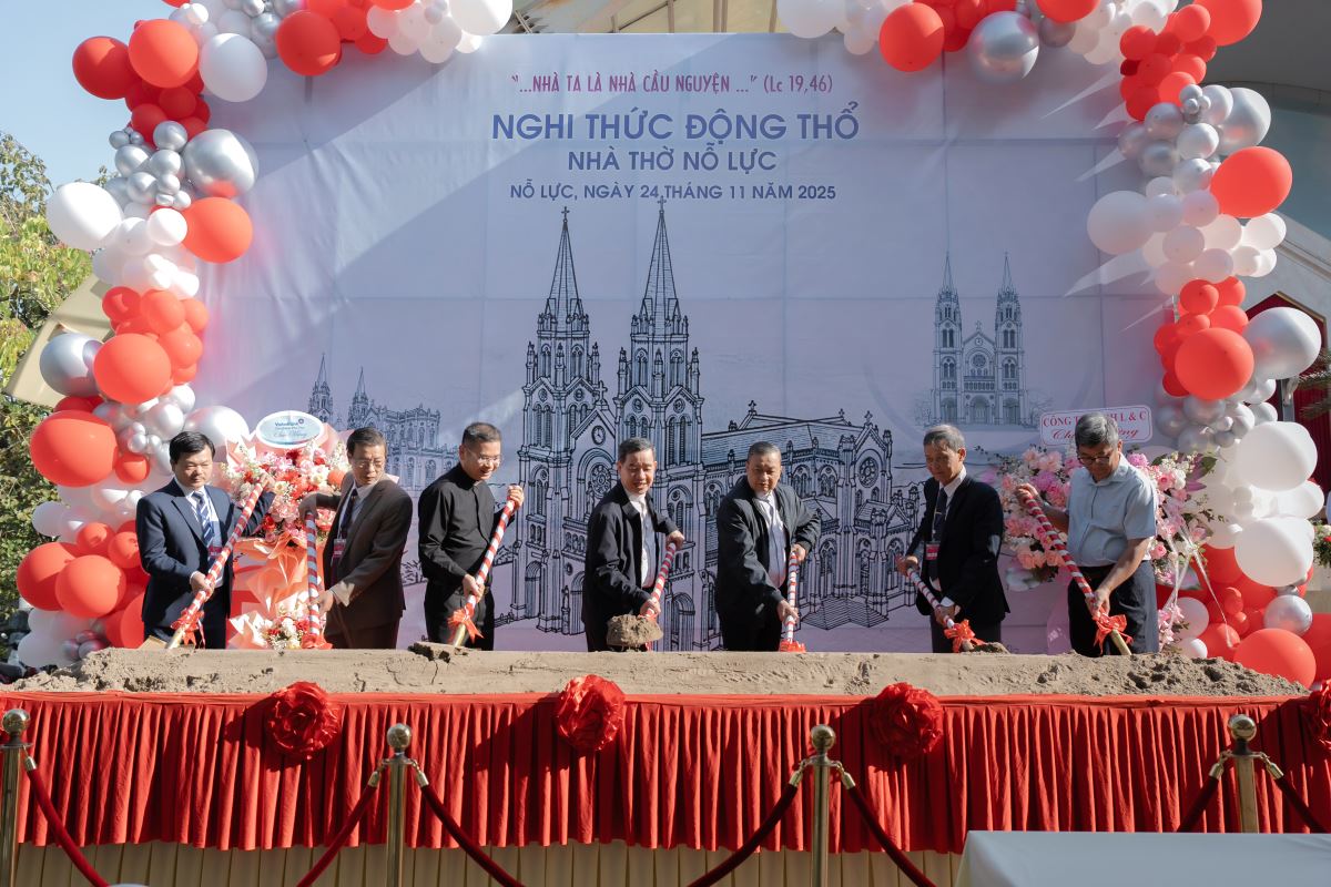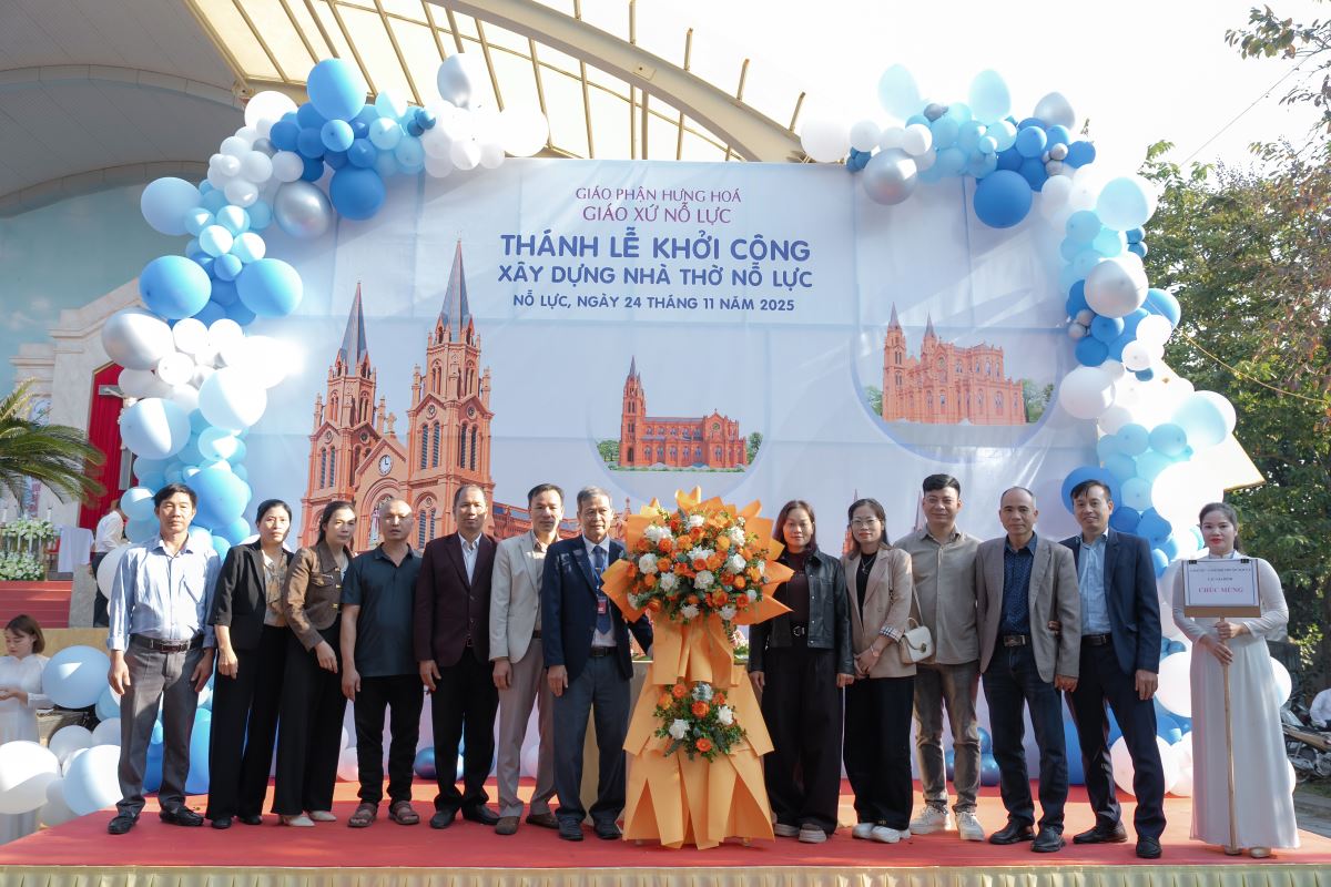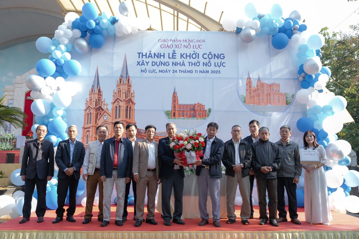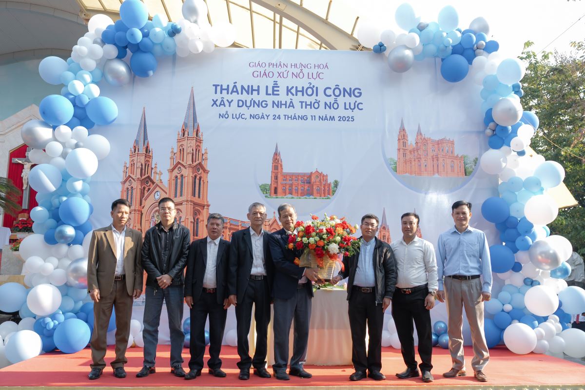 WGPHH – Trong bầu khí trang trọng và tràn đầy niềm vui, sáng ngày 24.11.2025, giáo xứ Nỗ Lực hân hoan cử hành Thánh lễ khởi công xây dựng nhà thờ mới. Thánh lễ do Đức cha Đaminh Hoàng Minh Tiến – Giám mục Giáo phận Hưng Hóa chủ sự. Đồng tế với ngài có quý cha Quản hạt, quý cha bản hương và quý cha trong giáo phận. Tham dự Thánh lễ còn có quý tu sĩ nam nữ, quý khách tôn giáo bạn, quý đại diện chính quyền cùng đông đảo cộng đoàn dân Chúa.
