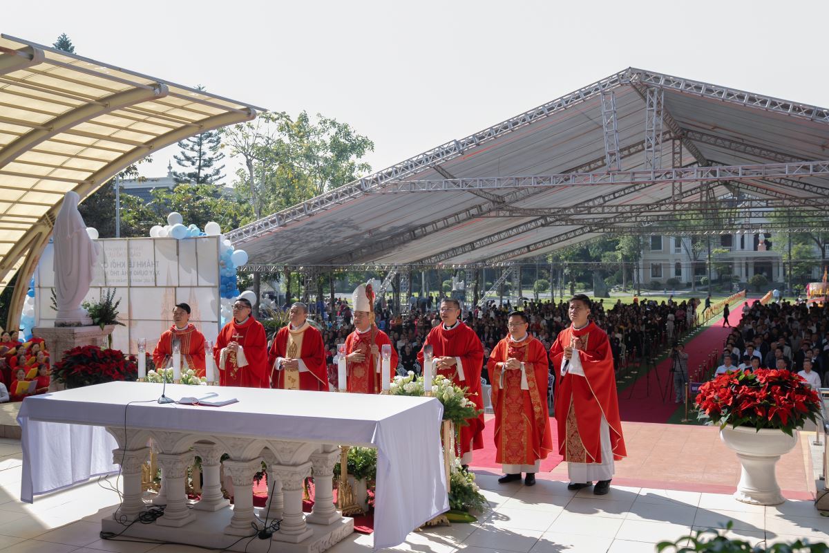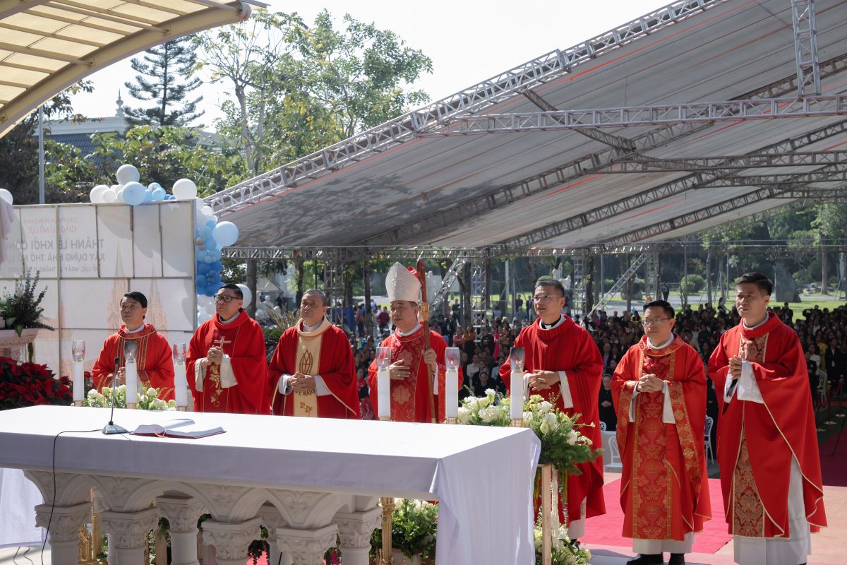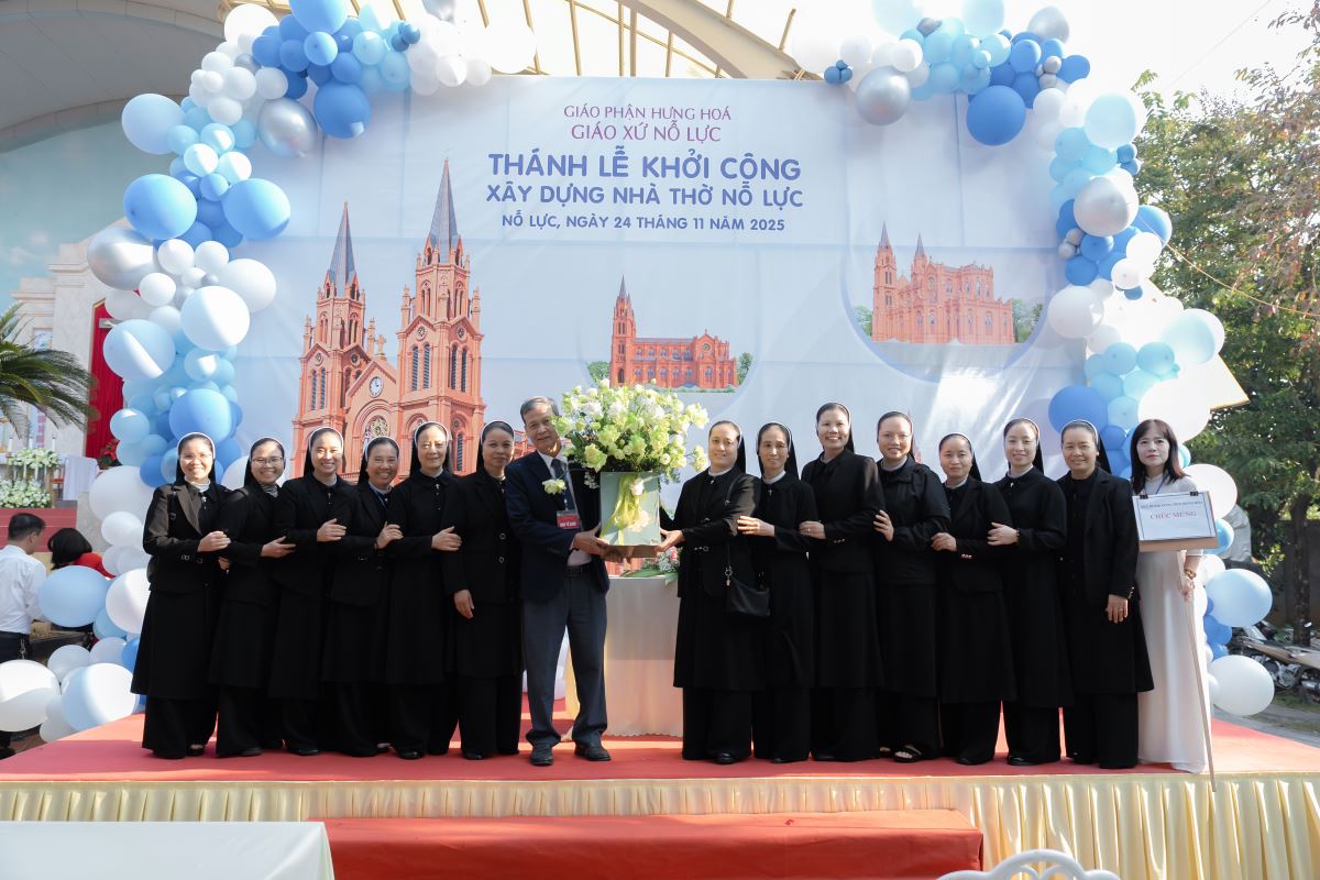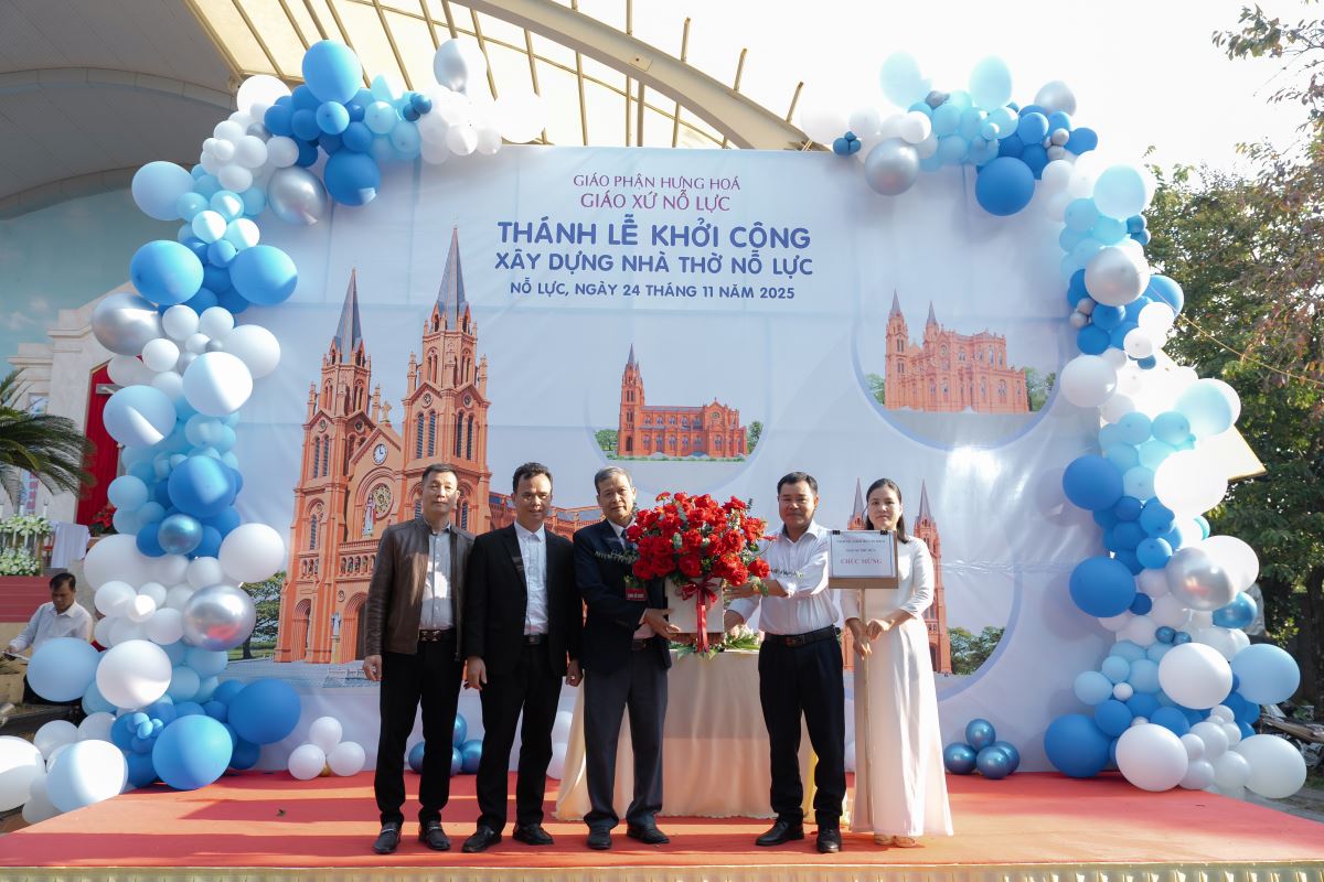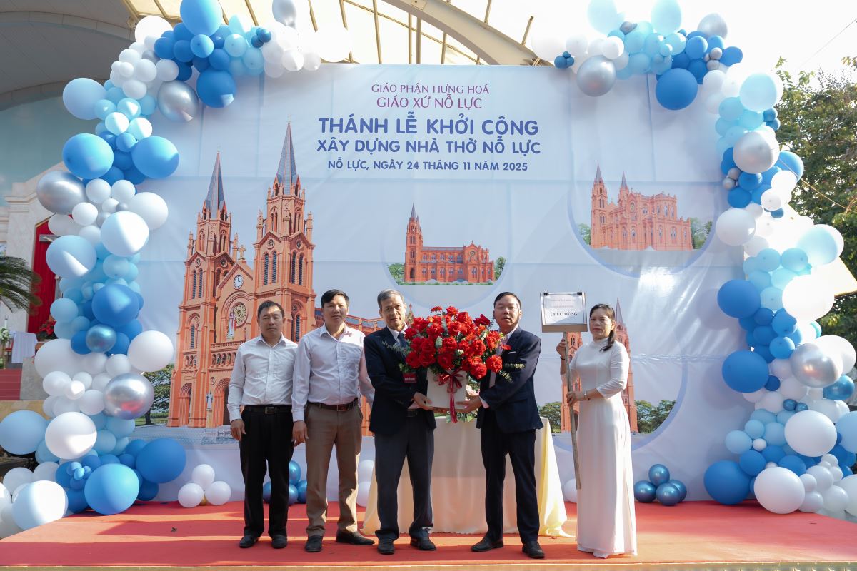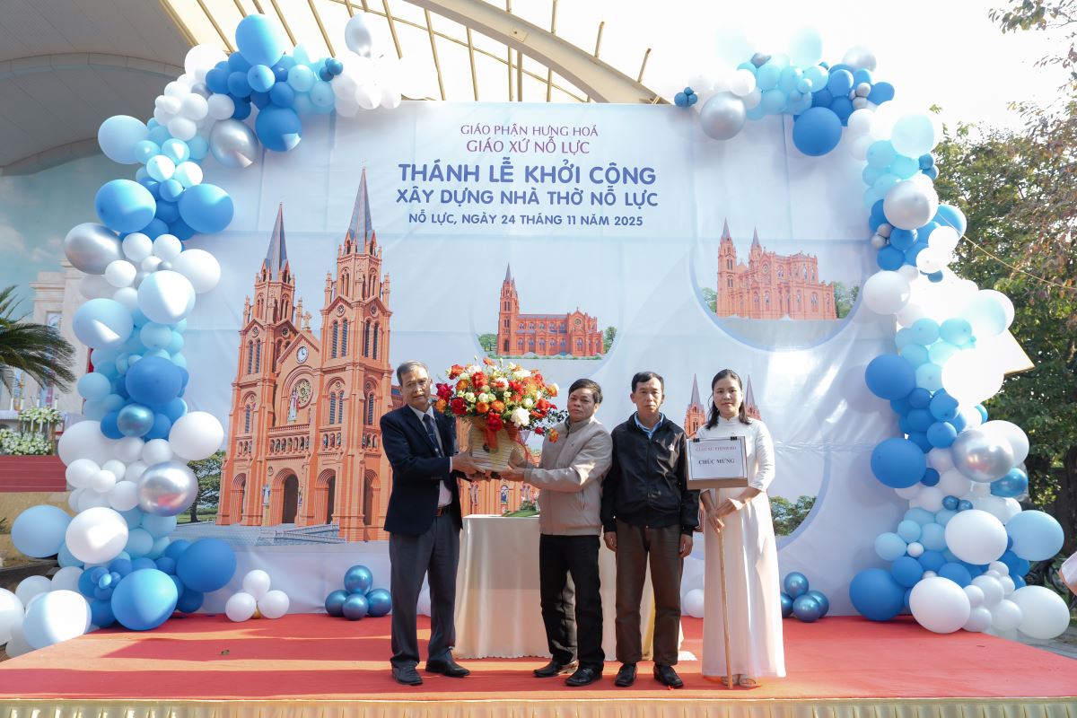 WGPHH – Trong bầu khí trang trọng và tràn đầy niềm vui, sáng ngày 24.11.2025, giáo xứ Nỗ Lực hân hoan cử hành Thánh lễ khởi công xây dựng nhà thờ mới. Thánh lễ do Đức cha Đaminh Hoàng Minh Tiến – Giám mục Giáo phận Hưng Hóa chủ sự. Đồng tế với ngài có quý cha Quản hạt, quý cha bản hương và quý cha trong giáo phận. Tham dự Thánh lễ còn có quý tu sĩ nam nữ, quý khách tôn giáo bạn, quý đại diện chính quyền cùng đông đảo cộng đoàn dân Chúa.