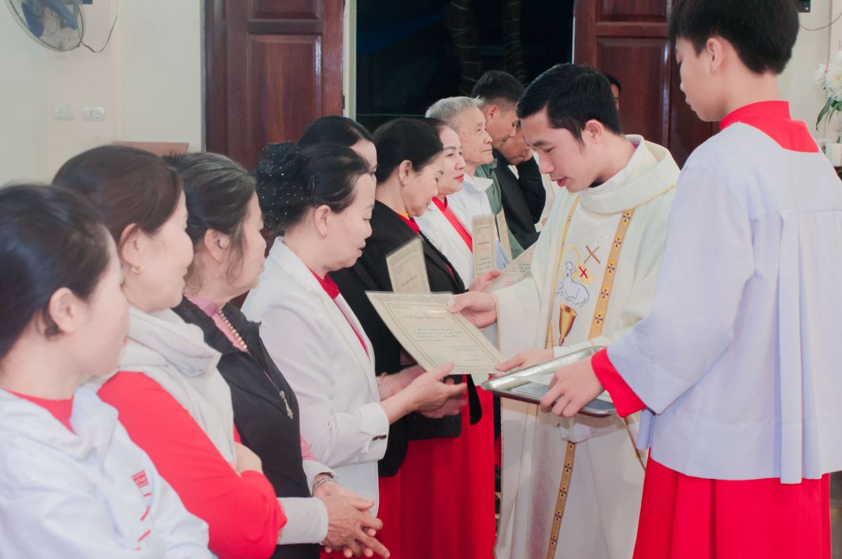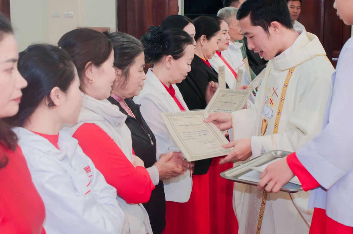 Sau Thánh lễ, các thầy cô giáo lý viên đã long trọng lãnh nhận chứng chỉ Giáo lý cấp III, ghi nhận những nỗ lực, cố gắng và tinh thần dấn thân trong suốt khóa học.