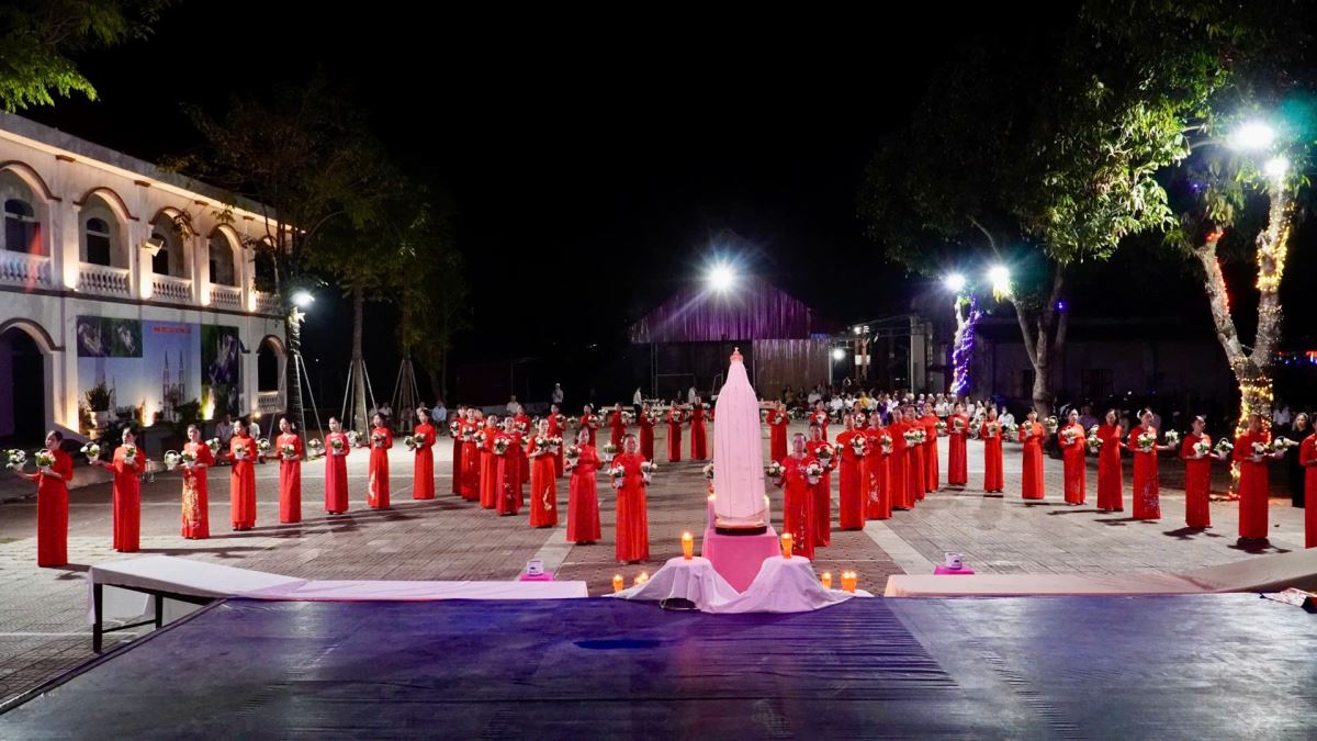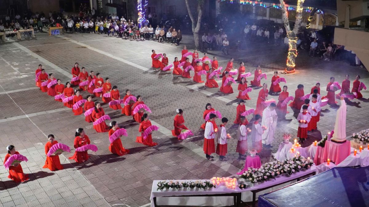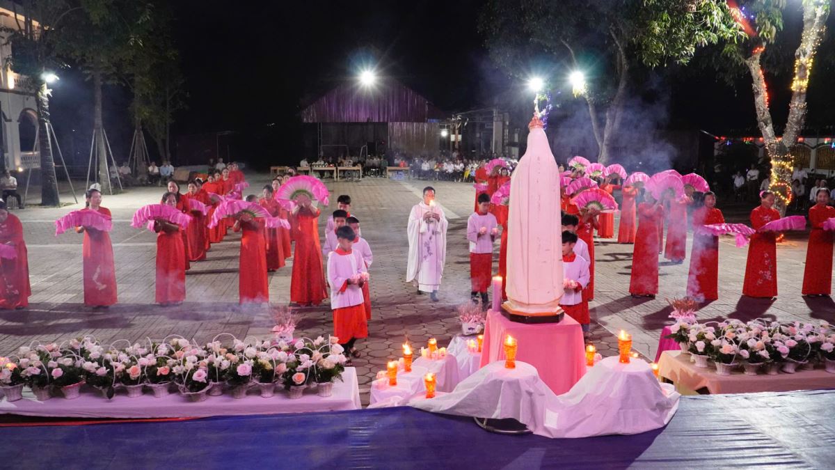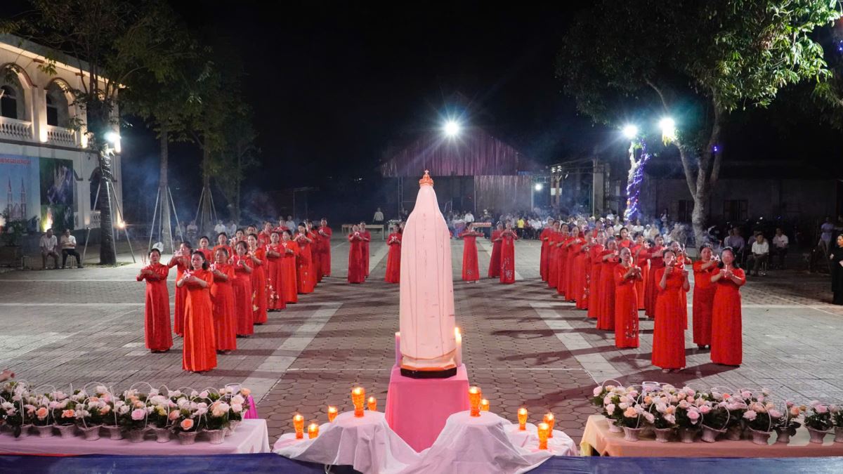 WGPHH - Tháng Năm là thời gian Giáo Hội dành riêng để tôn kính Đức Mẹ Maria – dâng lên Mẹ những đóa hoa thiêng liêng, những lời kinh nguyện sốt sắng và tâm tình thảo hiếu của đoàn con cái. Trong tâm tình đó, vào lúc 19g15 tối thứ Năm, ngày 01.5.2025, cha xứ Giuse Trần Minh Trọng, quý dì và toàn thể cộng đoàn giáo xứ Phù Lao đã quy tụ đông đảo tại quảng trường của giáo xứ để long trọng khai mạc Tháng Hoa kính Đức Mẹ.