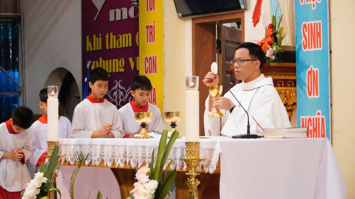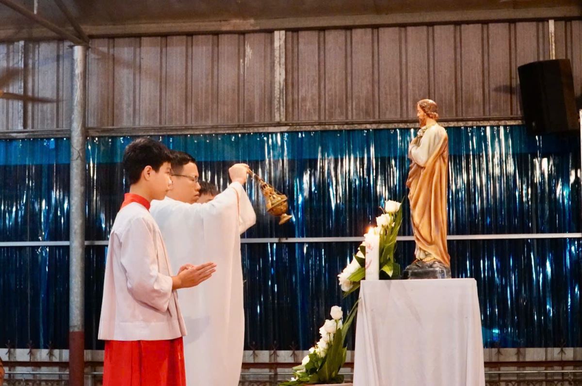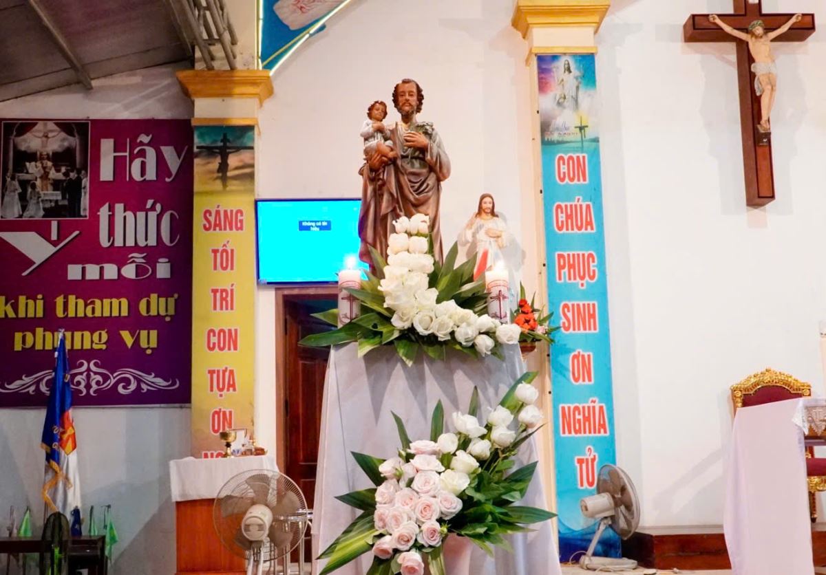 Tiếp nối nghi thức dâng hoa là Thánh lễ kính Thánh Giuse Thợ – bổn mạng của Hội Giuse giáo xứ Phù Lao – do cha xứ Giuse chủ sự.