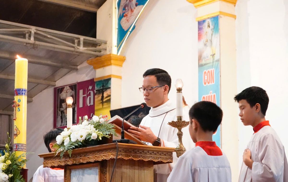 Mở đầu Thánh lễ, cha đã gửi lời chúc mừng đến Hội Giuse và tất cả những ai nhận Thánh Giuse làm bổn mạng. Ngài mời gọi cộng đoàn noi gương Thánh Cả trong đời sống lao động chuyên cần nhưng không quên cầu nguyện, để mỗi ngày sống trở thành một hiến lễ đẹp lòng Thiên Chúa.