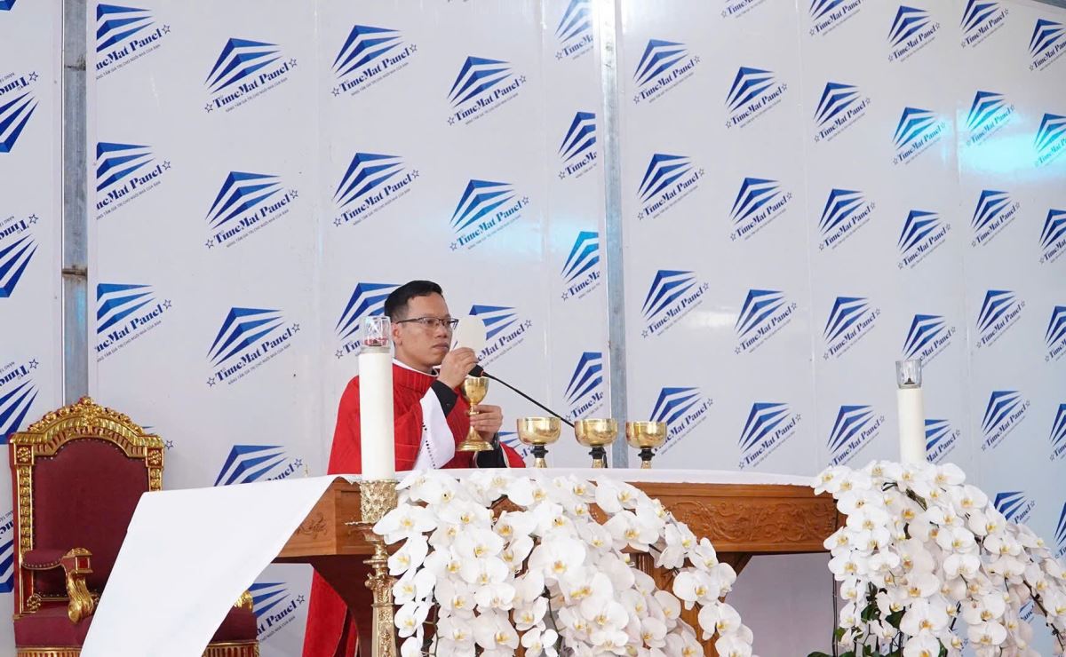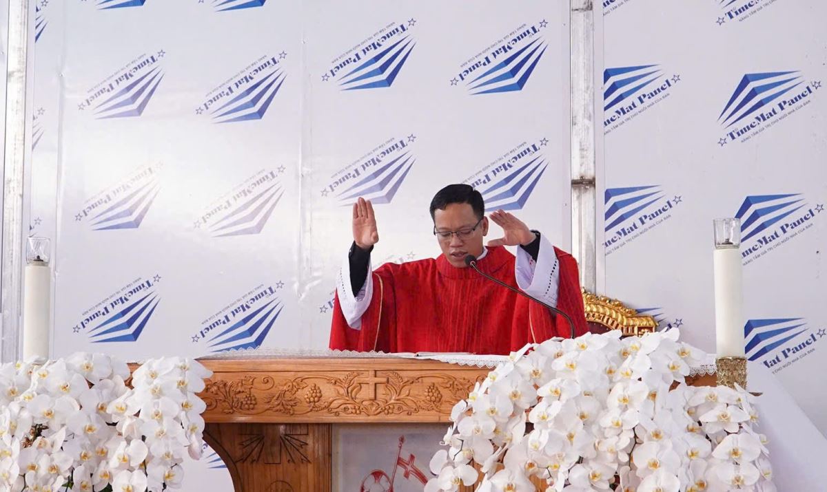 Cha xứ Giuse Trần Minh Trọng công bố Tin mừng và giảng lễ |