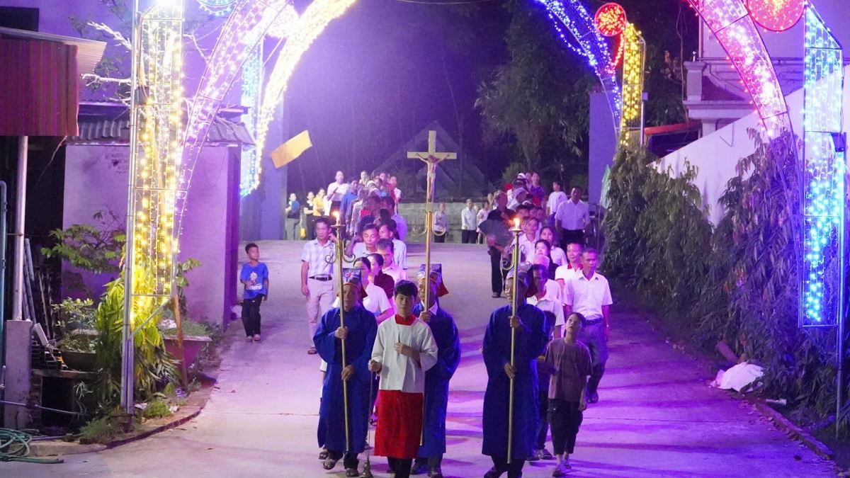 WGPHH - Tối Chúa Nhật, ngày 05 tháng 10 năm 2025, trong bầu khí linh thiêng và hân hoan, Giáo xứ Phù Lao đã long trọng cử hành cuộc rước kiệu tôn vinh Đức Mẹ và Thánh lễ mừng kính trọng thể Đức Mẹ Mân Côi, Mẹ đã luôn đồng hành, chở che và dẫn dắt đoàn con trên hành trình đức tin.
