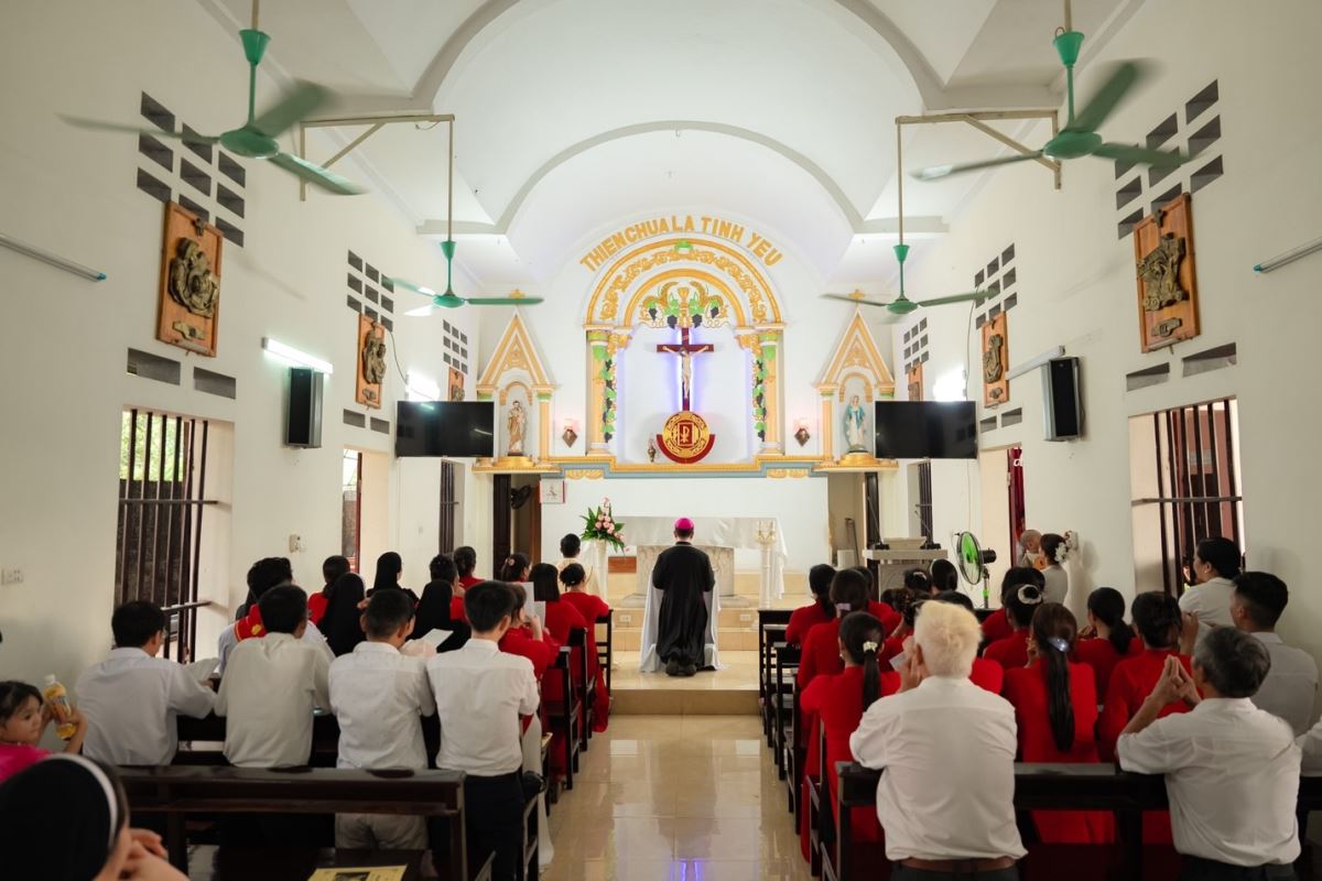 Thánh lễ diễn ra vào lúc 16g30 tại nhà thờ Giáo họ An Đạo, với sự hiện diện của các em lãnh nhận Bí tích, cha mẹ, người đỡ đầu và đông đảo cộng đoàn.