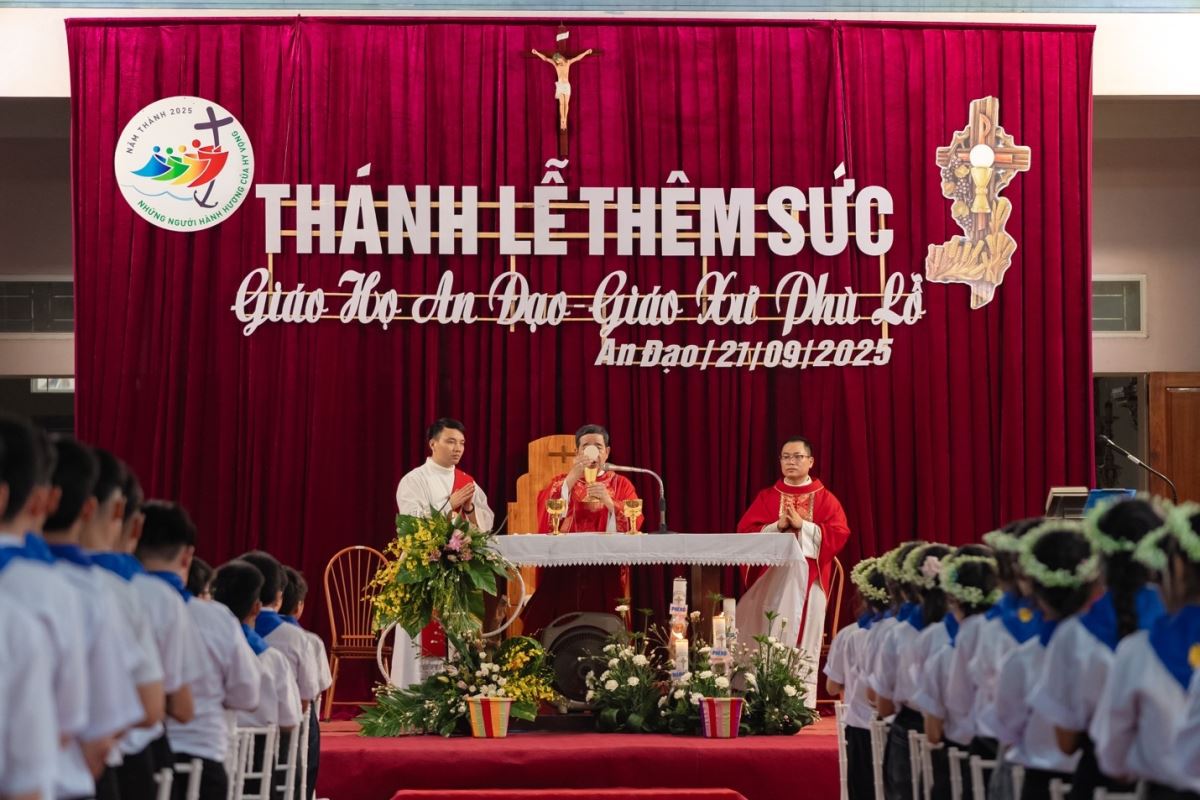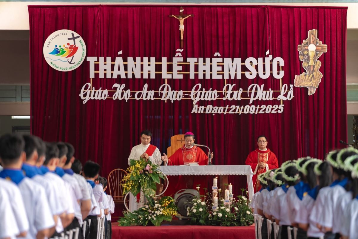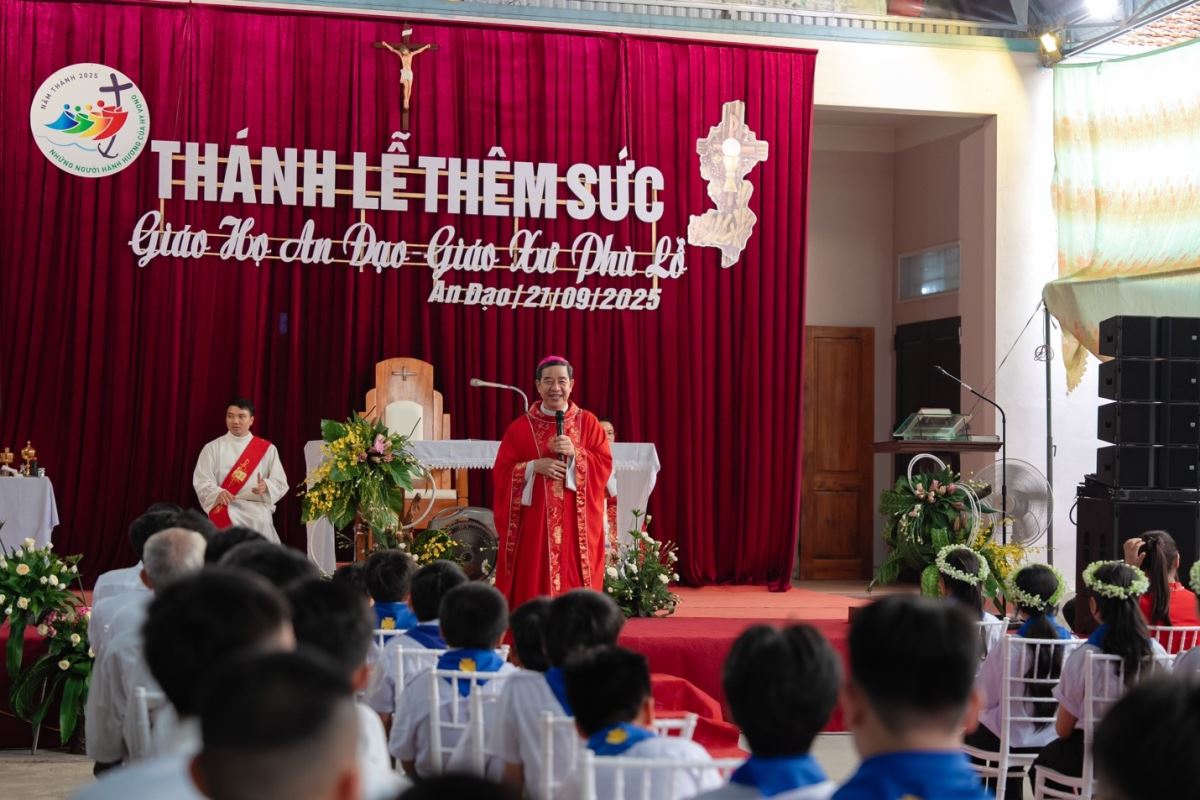 WGPHH - Chiều Chúa nhật, ngày 21/9/2025, cộng đoàn Giáo xứ Phù Lỗ hân hoan chào đón Đức Cha Đaminh Hoàng Minh Tiến về thăm mục vụ và chủ sự Thánh lễ ban Bí tích Thêm Sức cho 50 em thiếu nhi tại Giáo họ An Đạo.