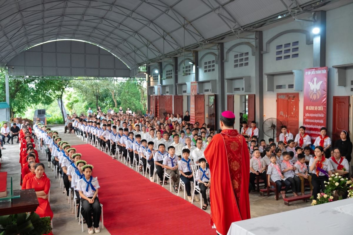 Đức Cha, trước khi ban phép lành trọng thể cuối lễ, đã nhắn nhủ các em hãy luôn giữ vững ngọn lửa đức tin, để nhờ bảy ơn Chúa Thánh Thần và qua mười hai hoa trái mà các em đã lãnh nhận, đời sống của các em sẽ luôn trổ sinh nhiều hoa trái thánh thiện, hầu trở thành những chứng nhân sống động cho Tin Mừng.