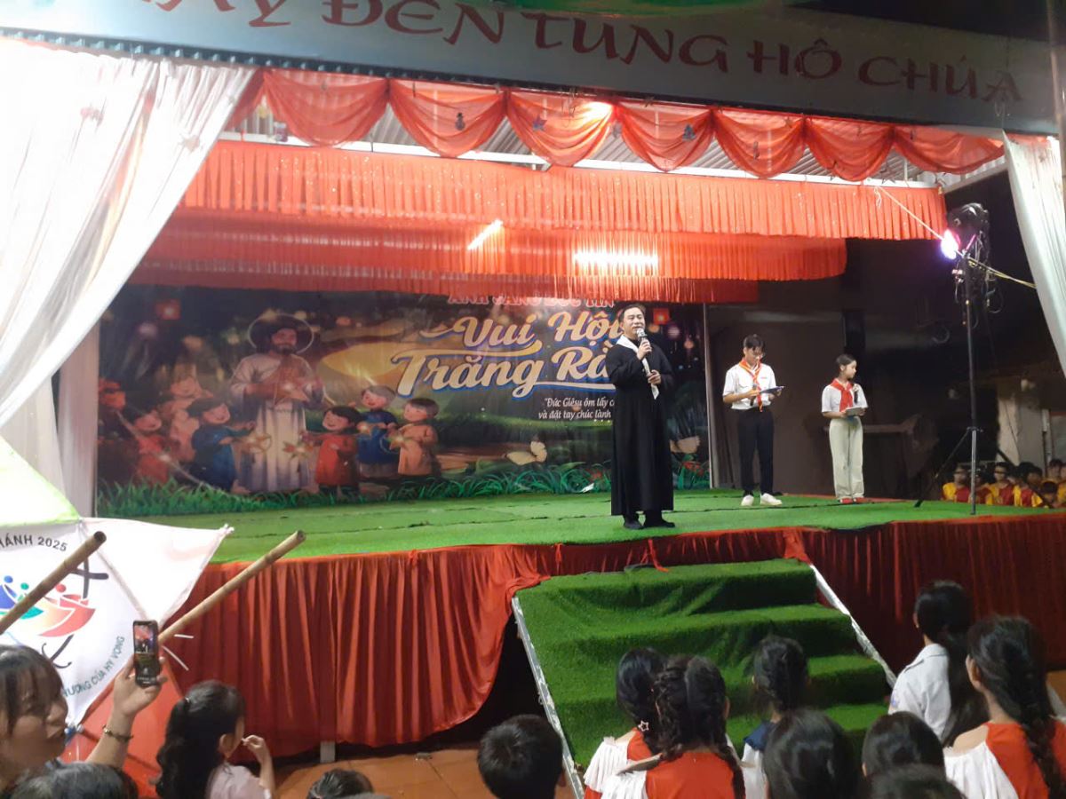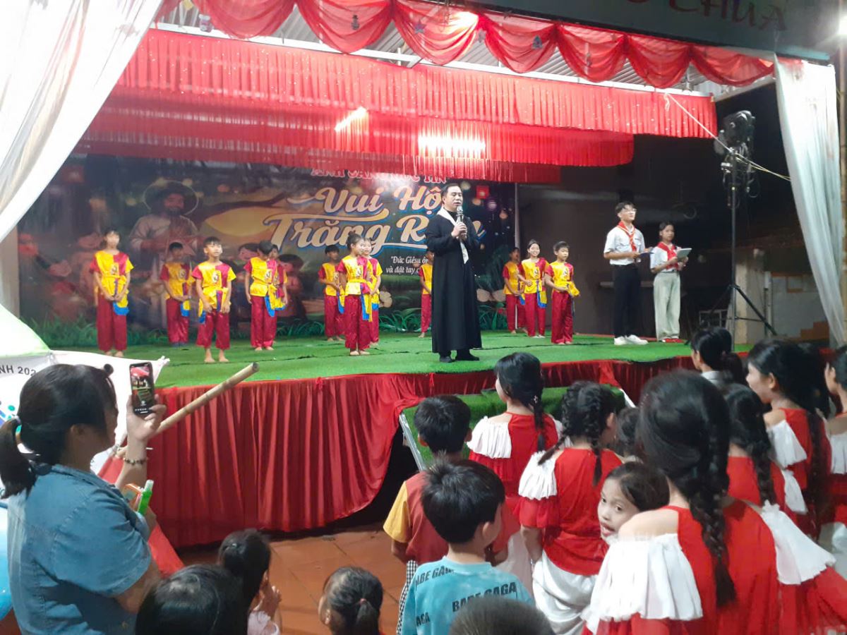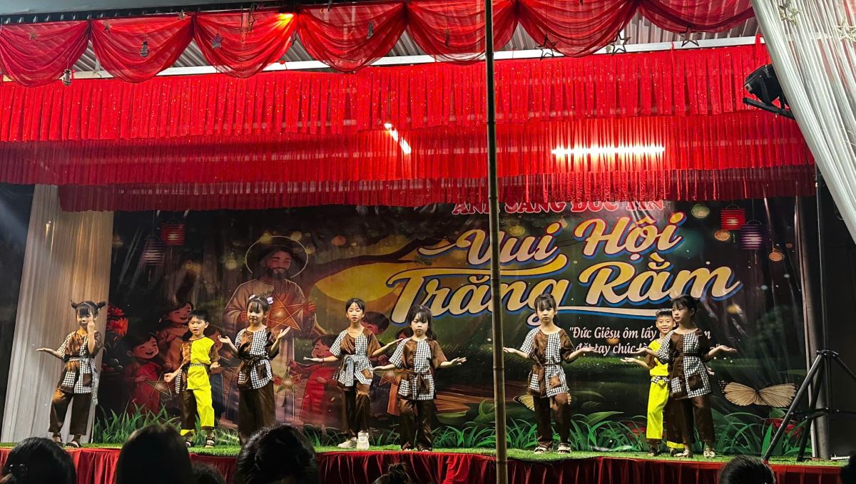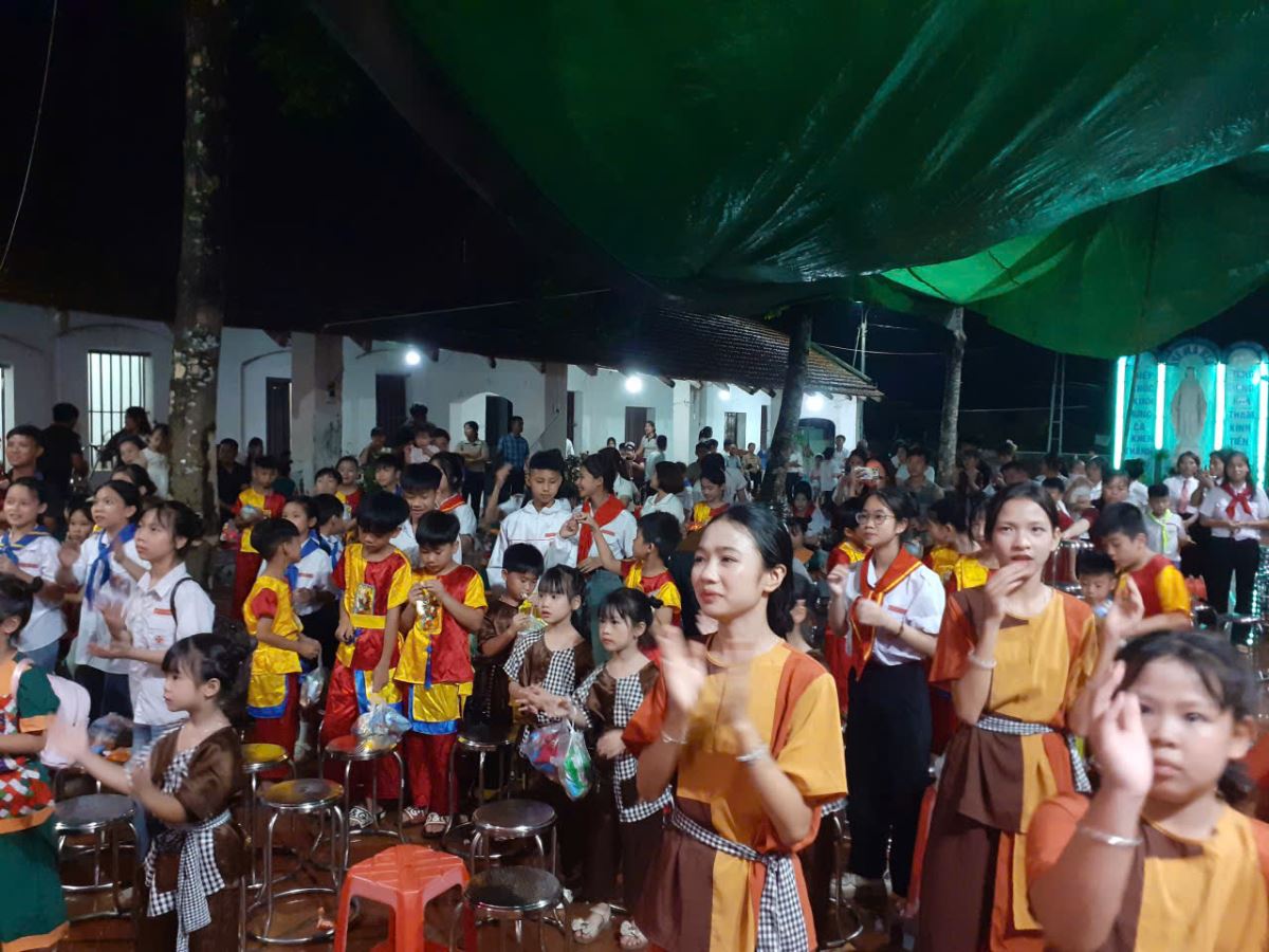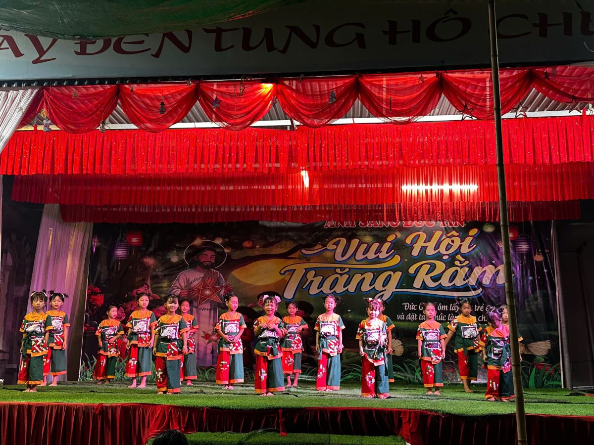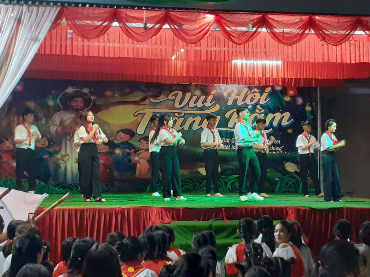 Sau Thánh lễ, sân khấu nhà thờ bừng sáng trong ánh đèn, tiếng reo hò và tiếng cười rộn rã khi bước vào phần văn nghệ trung thu. Các tiết mục múa hát, cử điệu do chính các em thiếu nhi của các giáo họ thể hiện đã mang đến những giây phút thật sôi nổi và vui nhộn, xen lẫn những câu hỏi vui trung thu và trao quà cho các em thiếu nhi và những ông bà lớn tuổi tôn giáo bạn. Mỗi tiết mục là một lời ca, một bông hoa tươi thắm dâng lên Chúa và Mẹ Maria trong niềm hân hoan tuổi thơ.