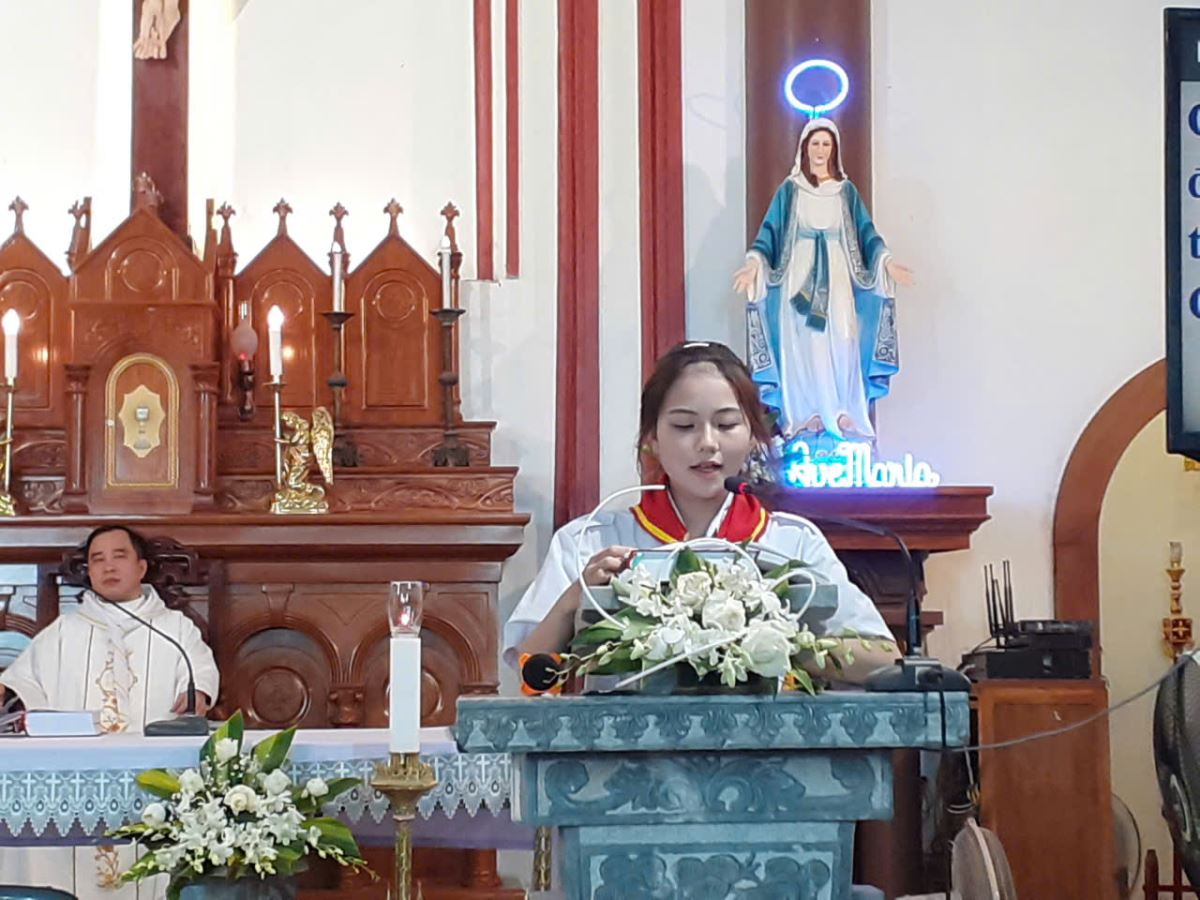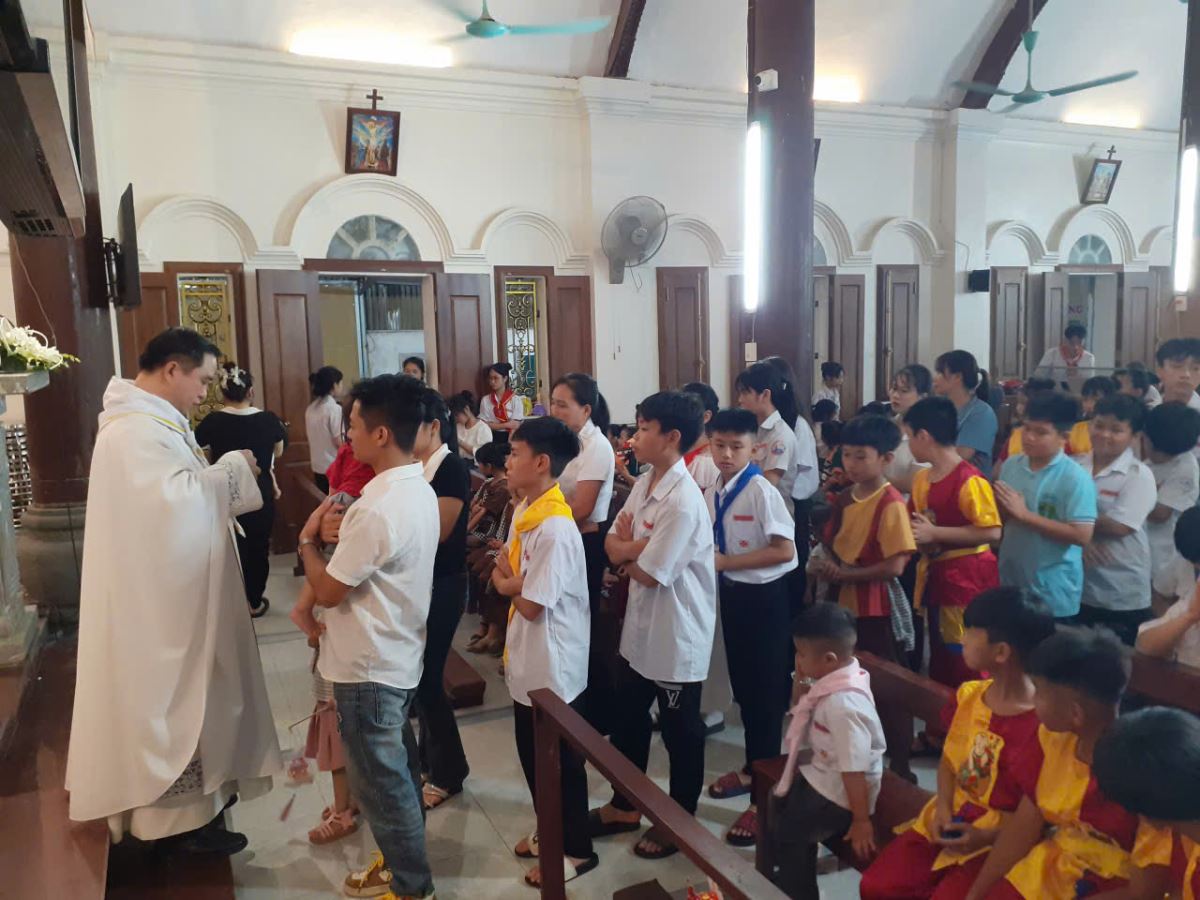 Sau cuộc rước, cộng đoàn cùng tham dự Thánh lễ Tạ ơn do cha Antôn Maria Phan Văn Trịnh chủ sự. Trong Thánh lễ, cha đặc biệt cầu nguyện cho các em thiếu nhi được luôn sống ngoan ngoãn, hiếu thảo, biết yêu thương và chia sẻ. Cha cũng nhắn nhủ các bậc phụ huynh hãy trở nên tấm gương sáng để giúp con cái lớn lên trong đức tin và tình yêu thương.