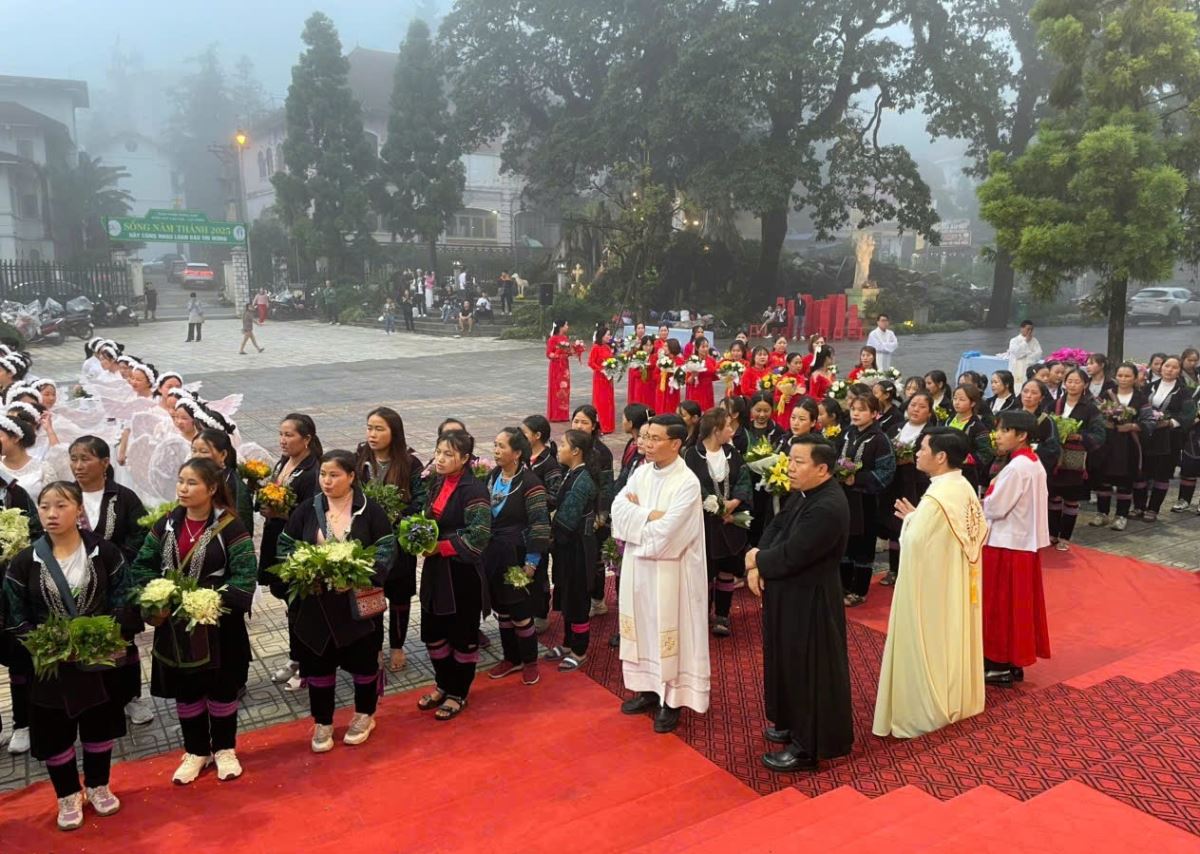 Với sự hiện diện của Giuse Đỗ Đình Tôn, Cha xứ Sapa, cũng là Cha Quản hạt Lào Cai – Lai Châu; Quý Cha, Quý Thầy Phó Tế, Quý Tu sĩ nam nữ đang giúp mục vụ ở Giáo xứ Sapa; Quý Chức Hội Đồng Mục vụ; và đặc biệt là khoảng 300 thành viên của các đội dâng hoa đến từ 21 điểm thuộc Giáo xứ Sapa, đó là: