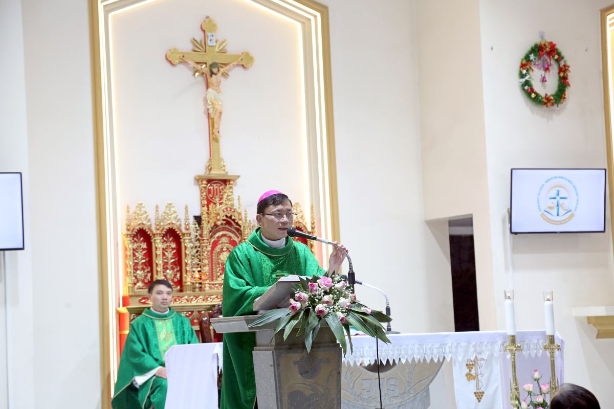 Trong bài giảng, Đức cha chia sẻ ý nghĩa của việc kỷ niệm hôn nhân trong ánh sáng Lời Chúa. Khởi đi từ Tin Mừng theo thánh Mátthêu (Mt 5, 17-37), ngài mời gọi các gia đình sống theo giới răn Chúa, bởi chính việc tuân giữ Lời Chúa là nền tảng giúp hôn nhân bền vững. Ngài khẳng định: hôn nhân Kitô giáo là đơn hôn và vĩnh hôn, nghĩa là hôn nhân một vợ một chồng, trung thành với nhau cho đến trọn đời.